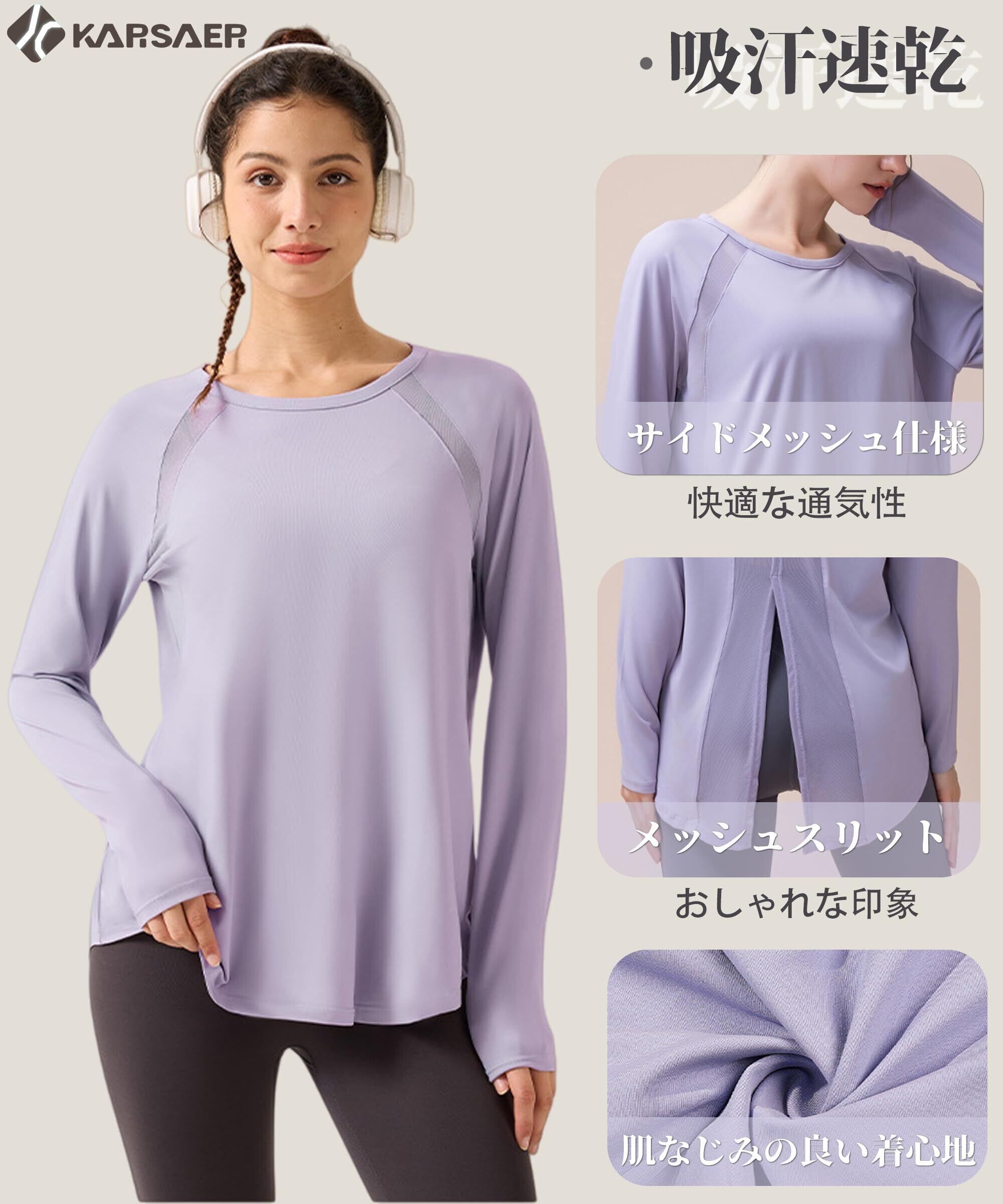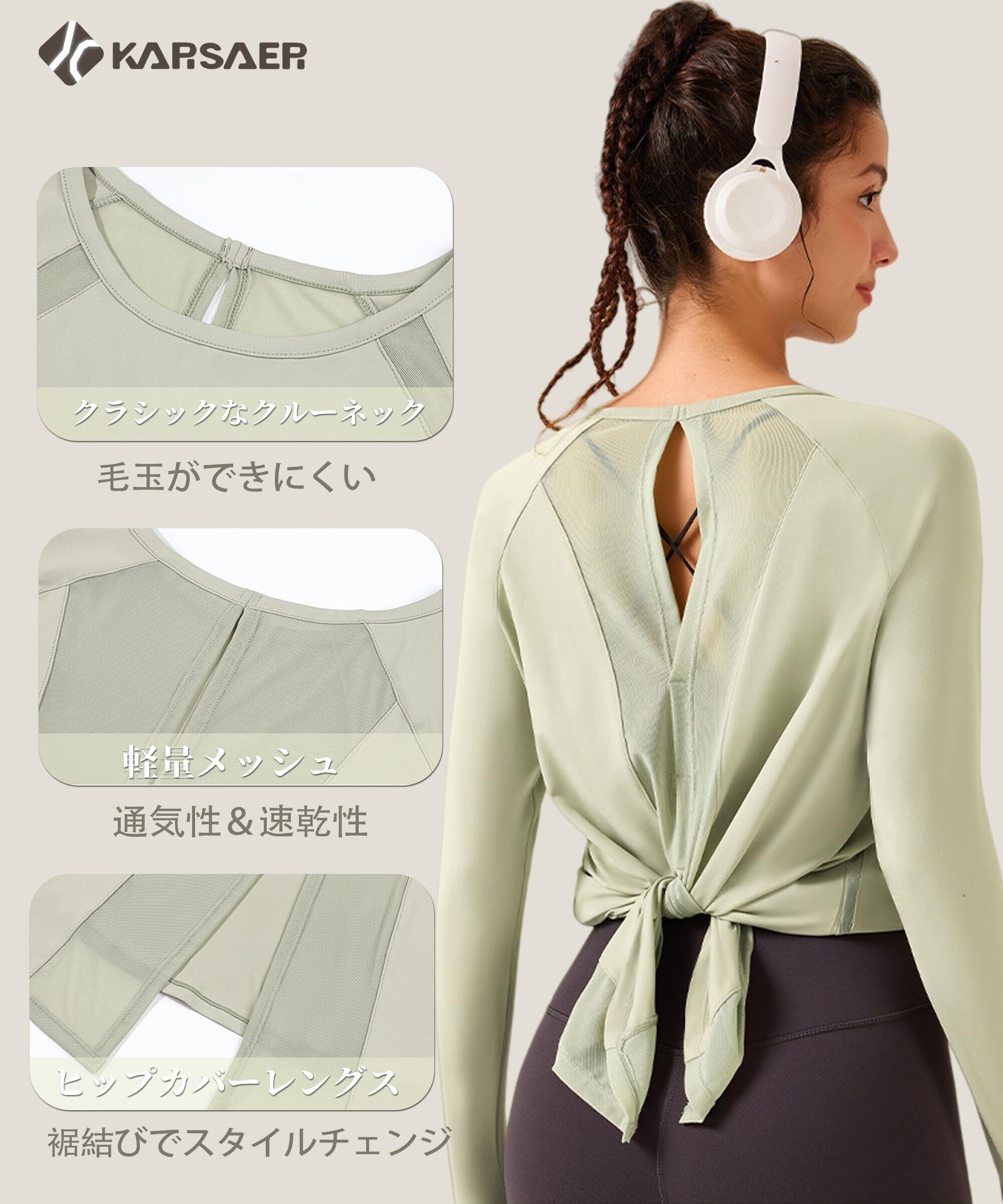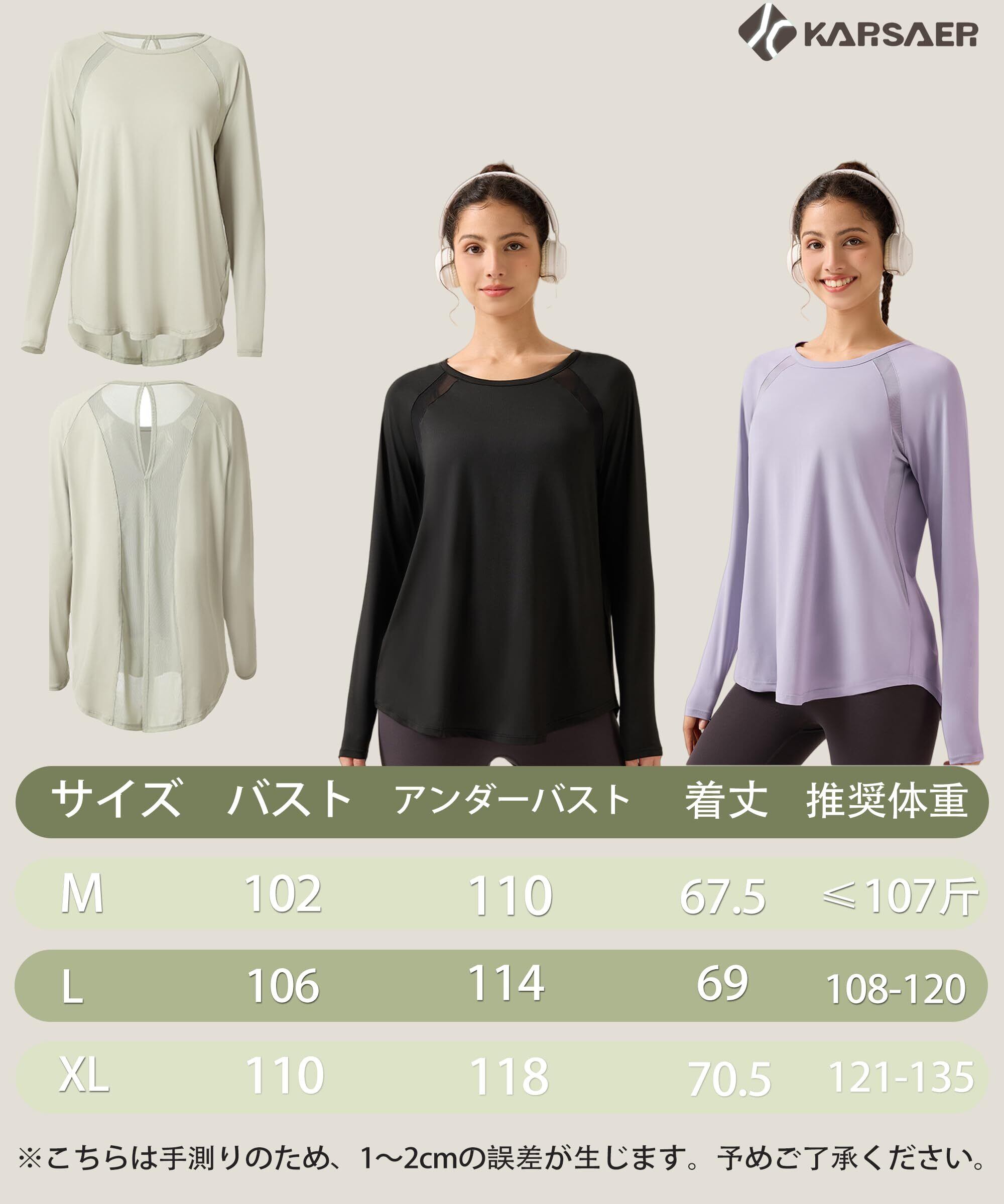 [Karsaer] ヨガウェア トップス 長袖 tシャツ レディース ゆったり 背中開き スポーツウェア ストレッチ ピラティス ランニング ジム ホットヨガ フィットネス 吸汗速乾 A0076