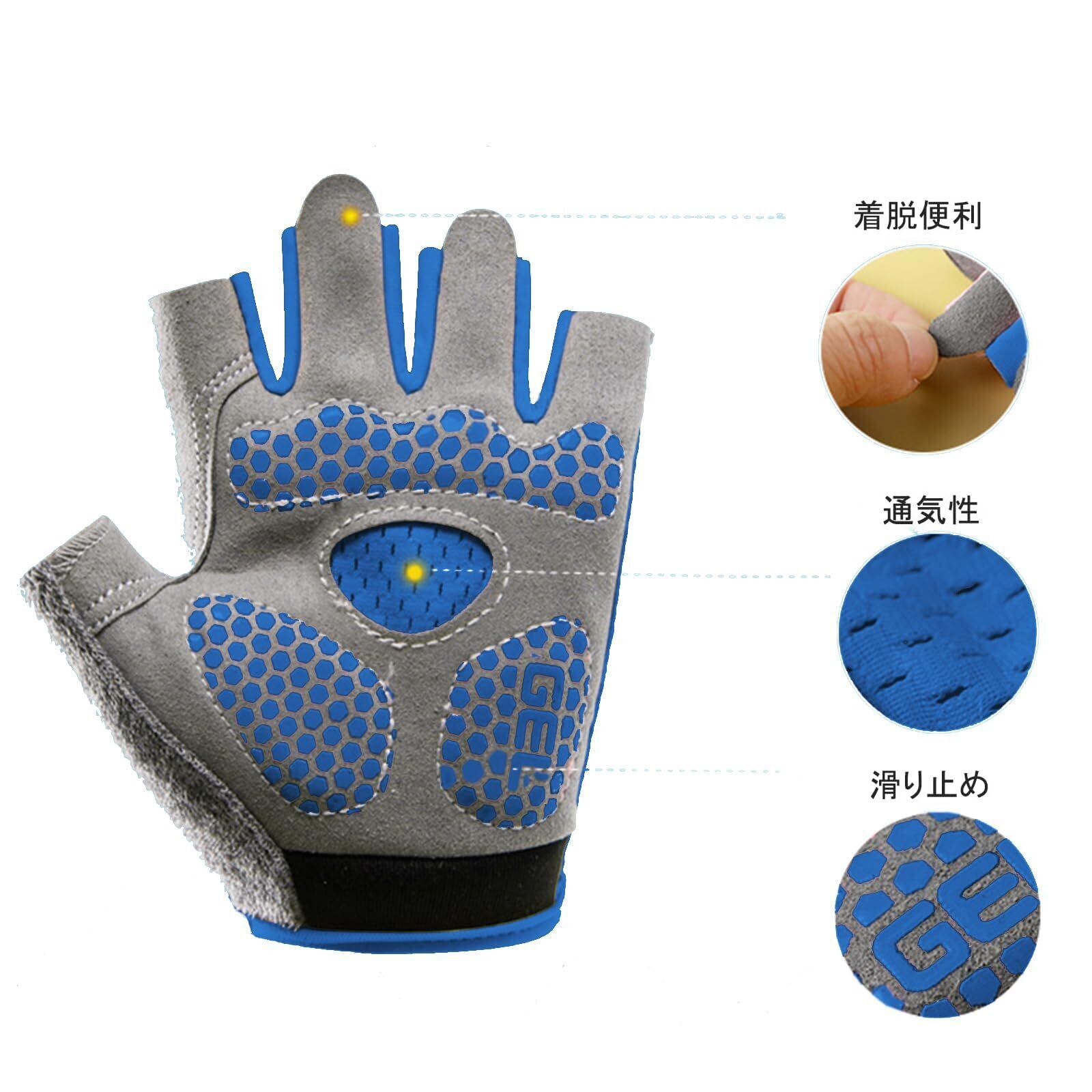 サイクルグローブ 子供 夏 自転車 手袋 指切りグローブ 7~12歳 3D 立体 衝撃吸収 耐磨耗性 通気性 滑り止め 怪我防止 日焼け止め アウトドア 自転車 バイク サイクリング 男の子 女の子 3色