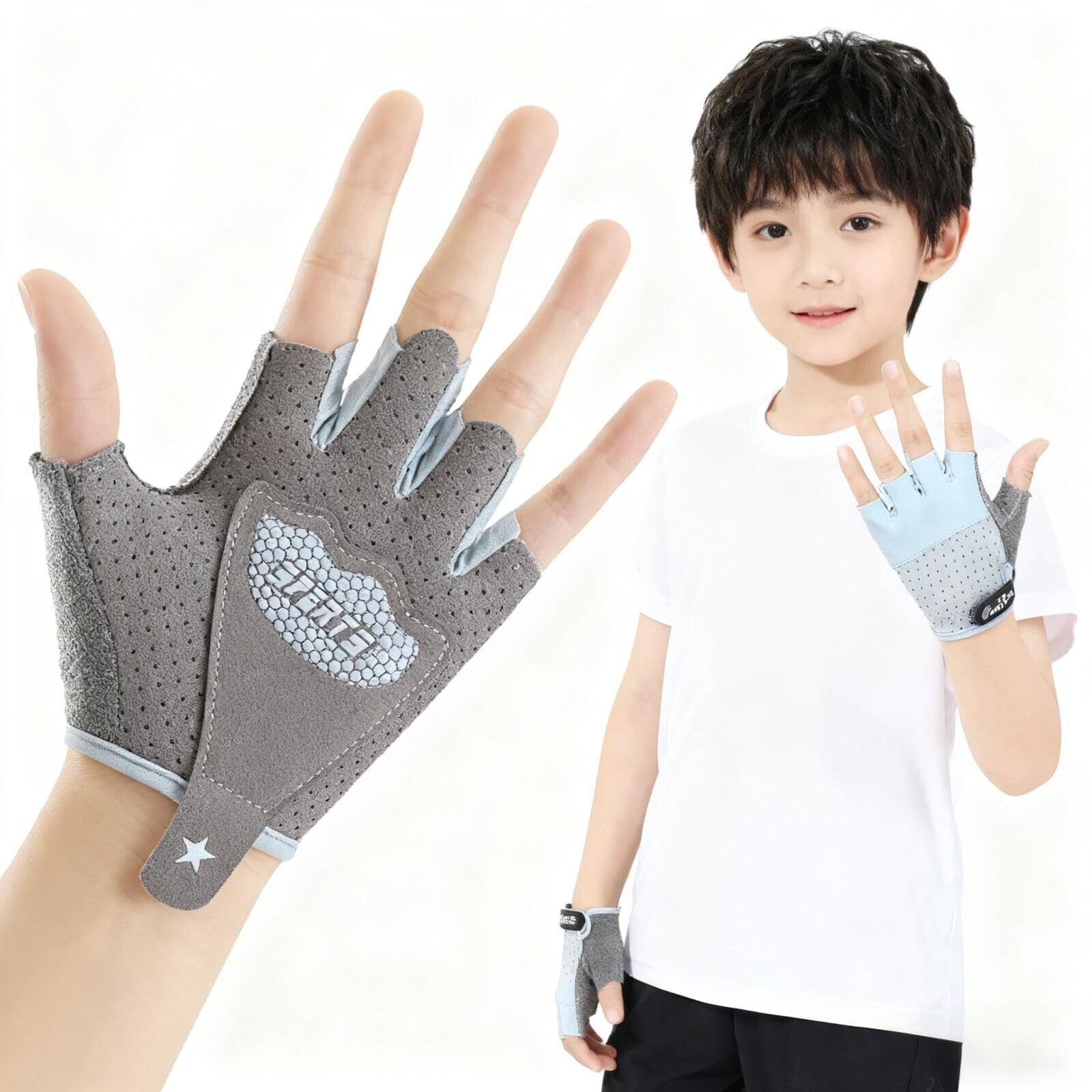 子供用 サイクリンググローブ キッズ 自転車手袋 ハーフ 指切り ハーフフィンガー グローブ ロードバイク グローブ 夏用 男女兼用 衝撃吸収 滑り止め メッシュ 通気性 シリコン 滑り止め 耐磨耗性 フィット感 運動用グローブ アウトドア