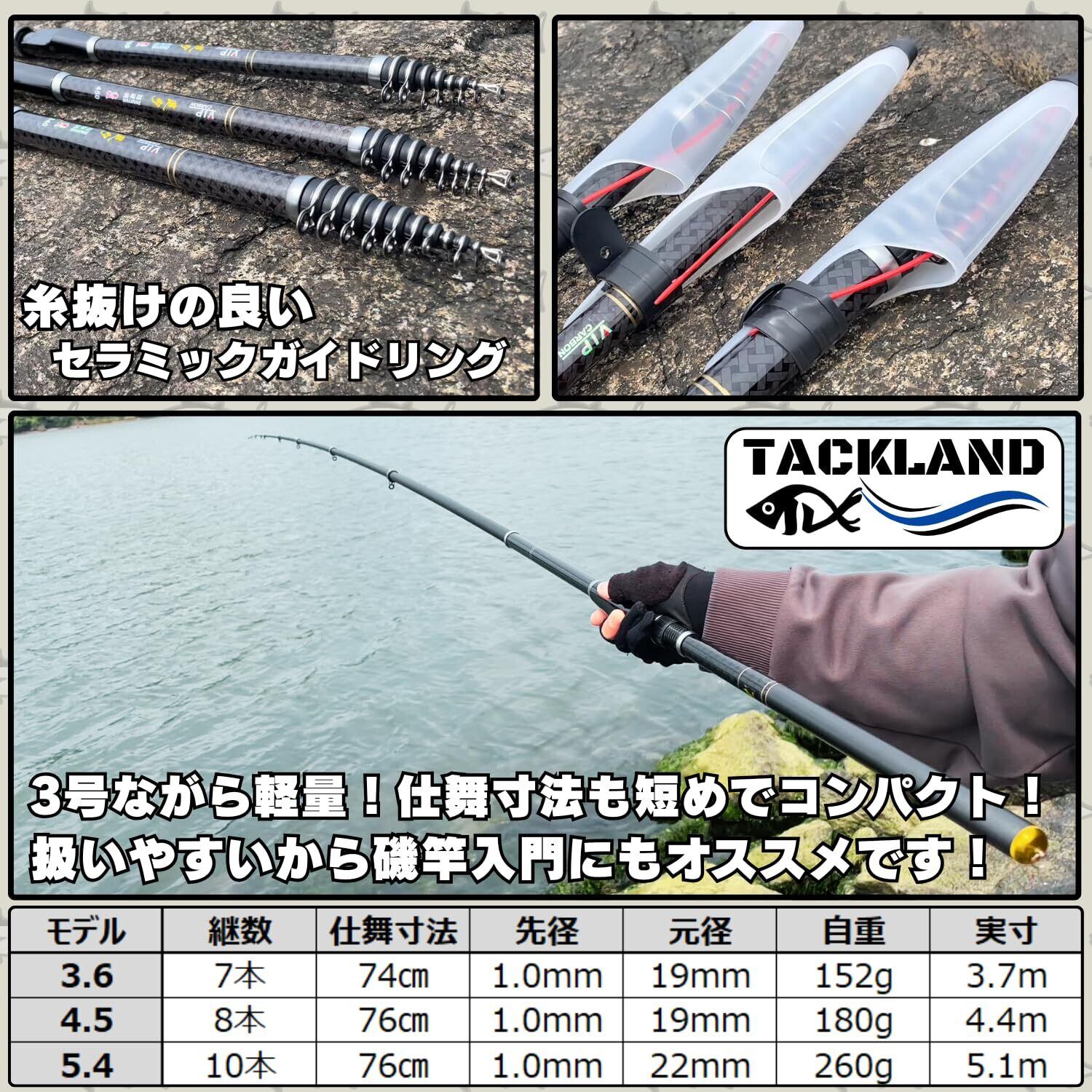【TACKLAND】 高コスパ 磯釣り入門&ベテランも使いやすい軽量カーボン磯竿3号 追月 フカセ釣り サビキ 紀州釣り 投げサビキ ウキ釣りなど