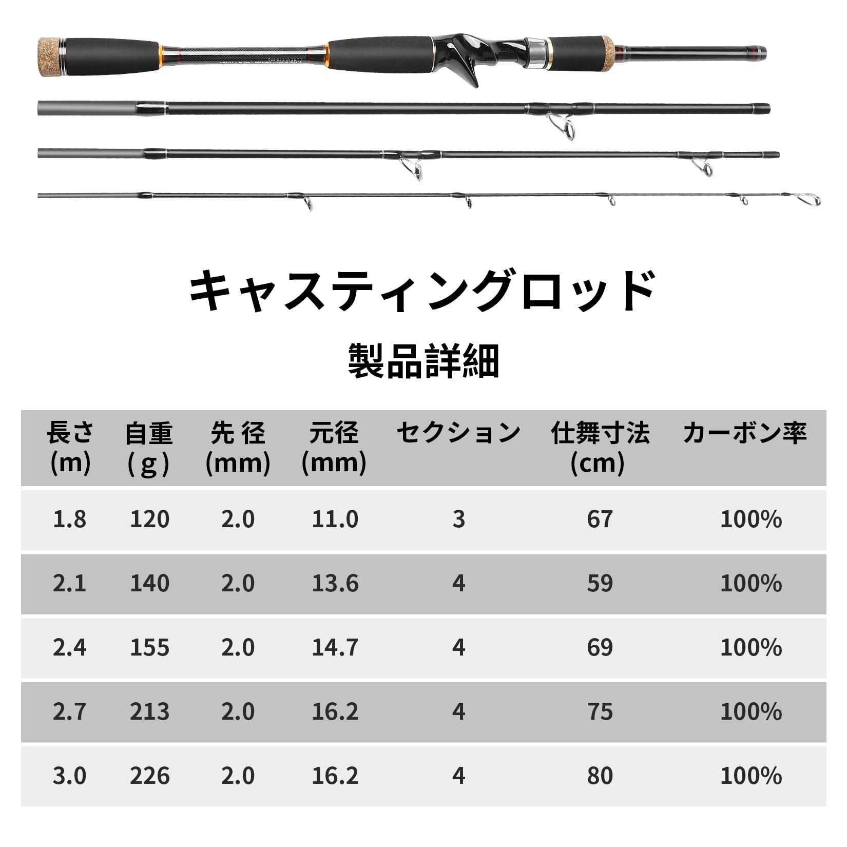 サンライク(SANLIKE) エギングロッド ス カーポン製 軽量 ルアーロッド スピニングロッド キャスティングロッド パックロッド シーバス エギング ロックフィッシュ ショアジギング バス 210/240/270/300cm