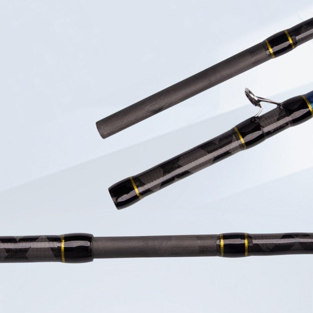 優れたカーボン素材で作られた竿,内部が交差方向でロッドにカーボンテープで締めあげることによりトルクを向上,ねじれ防止に貢献。
