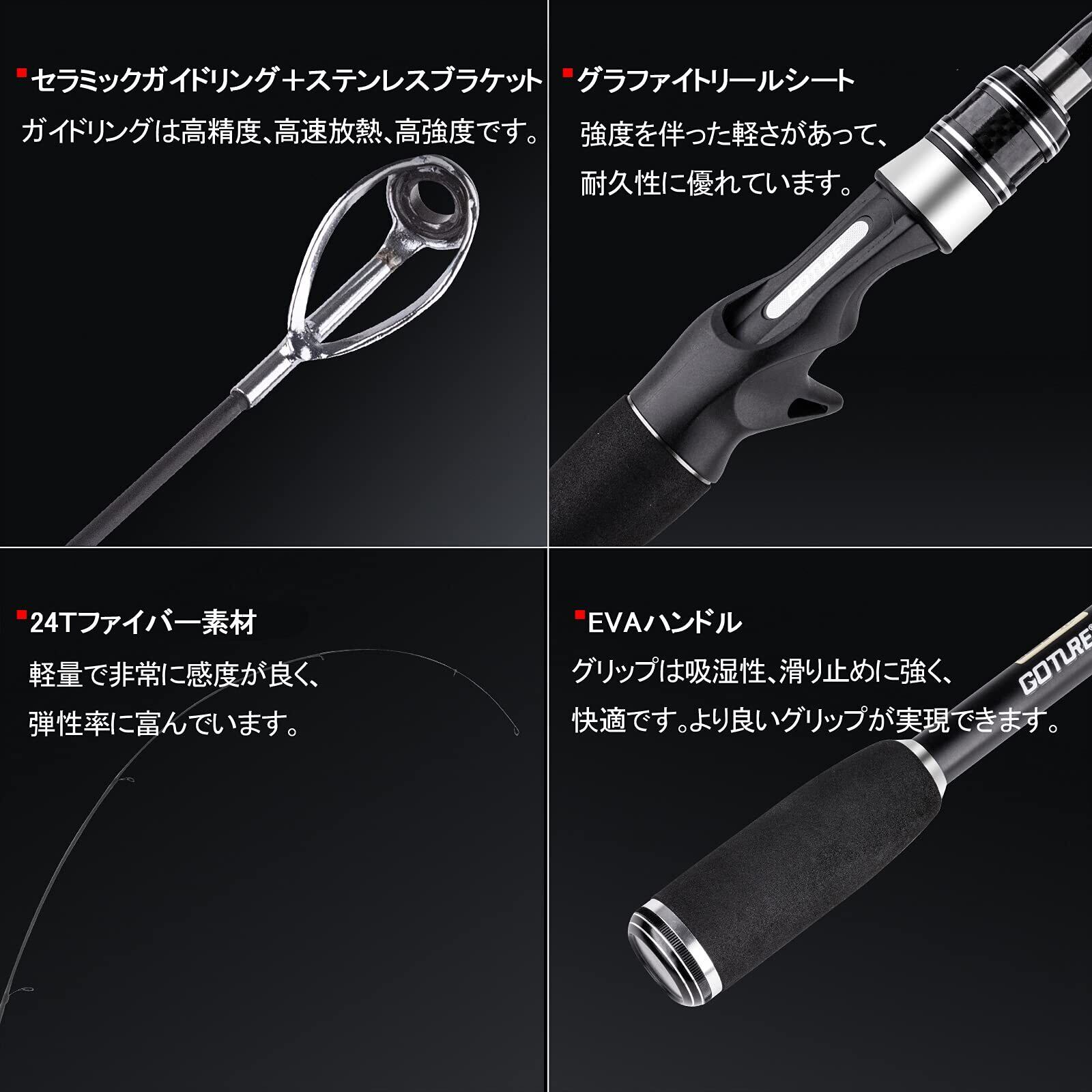 【優れたカーボン素材と構造】GOTURE新作テレスコピックフィッシングロッド-リゲルシリーズは高品質のコンポーネントのみで作られています。理想なカーボン素材でできているコンパクトロッドで、もともと耐久性は備わっています。24T炭素繊維は最高の強度も実現できます。セラミックガイドはなめらかで放熱しやすいです。