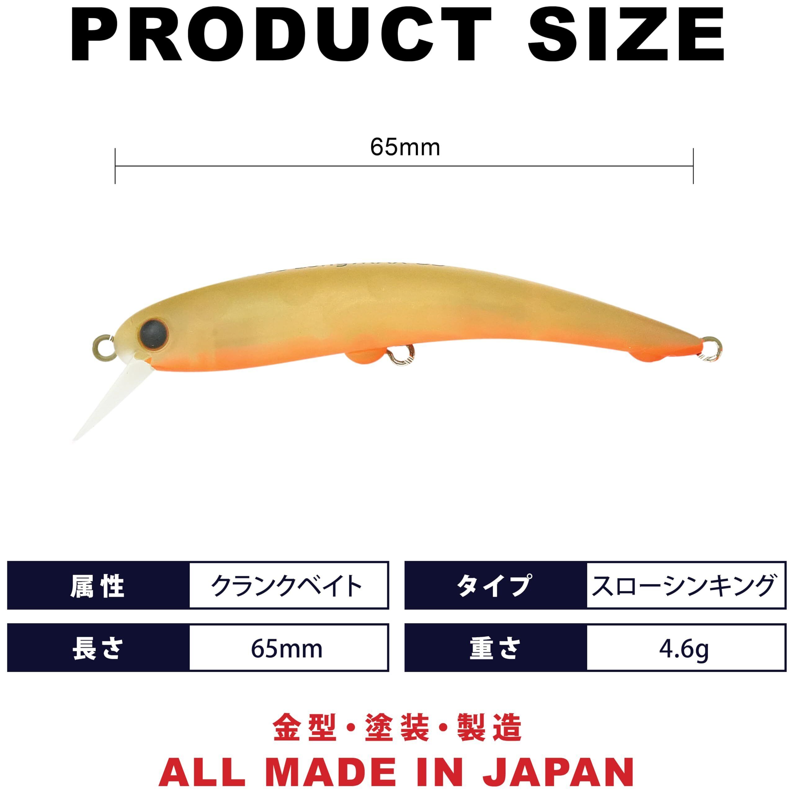 そしてシリーズ最大サイズの「65 Long MAX SS」は、広く泳ぐ回遊系トラウトとの出会いや、これまで釣ったことのないビッグトラウトを引き出すための“未知との遭遇”ルアー。ワイドなボディと独特の水噛みによる存在感で、大型個体の本能を強く刺激します。