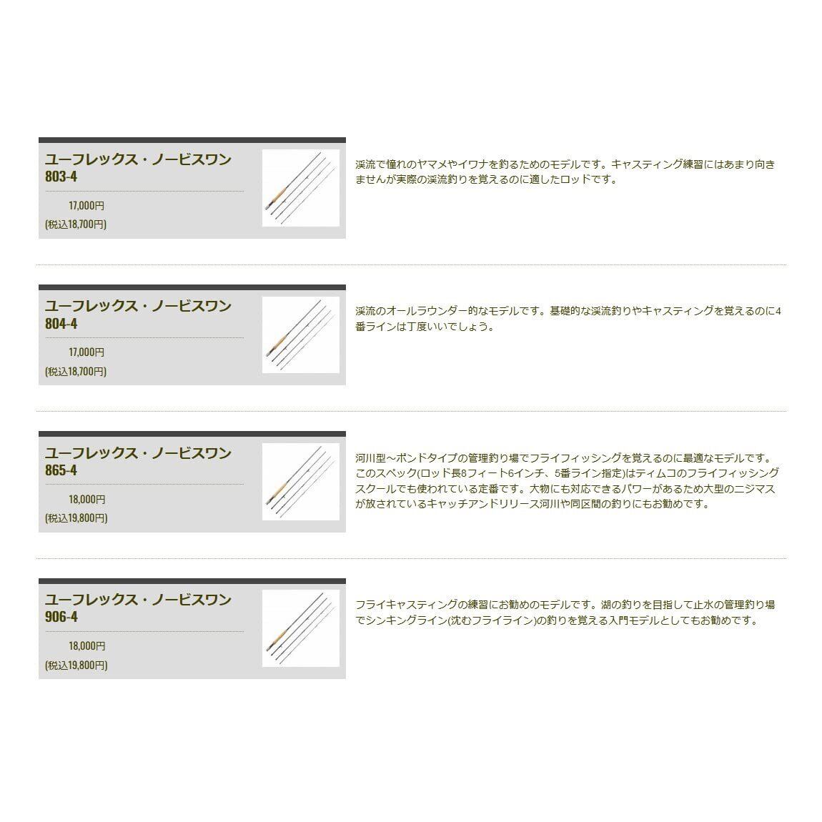 渓流から止水の管理釣り場までをカバーできるラインナップとなっています。ユーフレックス・ノービスワン 906-4