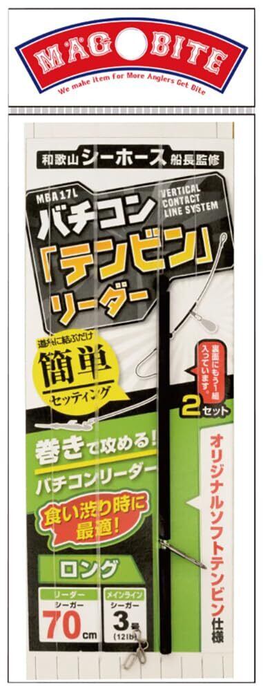 マグバイト(Magbite)MBA17バチコン「テンビン」リーダー!!船長の必釣仕掛をカタチに!巻きで攻める!バチコンリーダー!和歌山・シーホース船長監修。船上で高い実績を誇る船長直伝のスペックを形にしました。とくかく便利、船上でのノットの組みを時短できます。セッティングは超簡単。仕掛けを取り出してループに道糸を結ぶだけ。絶妙なサイズ感とハリを持たせたオリジナル天秤はカラミが少なく快適にゲームを楽しめます。