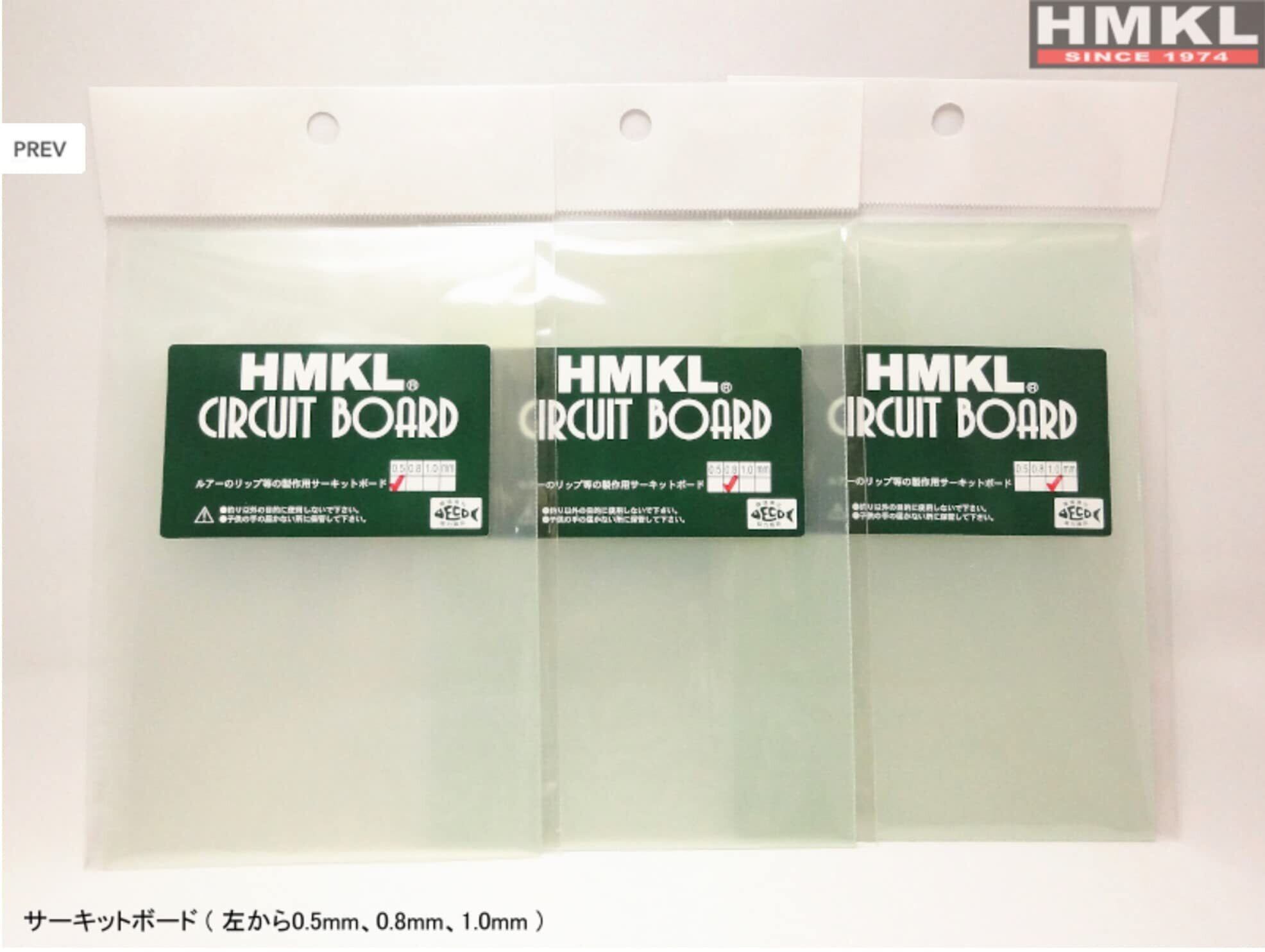 HMKL/ハンクルサーキットボード◆サイズ:100mmx150mm◆厚み:0.5mm、1.0mmこのサーキットボードは世界初のバルサ製のクランクベイトにリップとして使用されていた材料です。数十年が経過した現在でも、この薄さと軽さでこれだけの強度と耐久性を備えたリップの材料は他に類をみません。