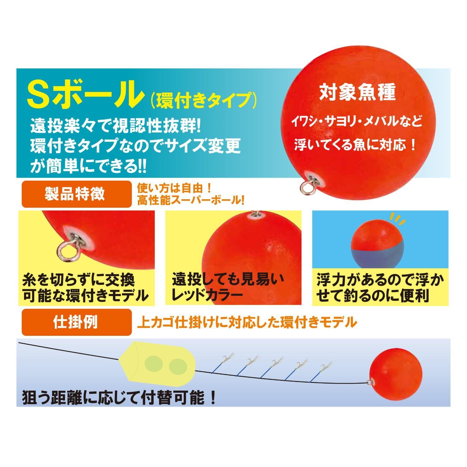 キザクラ(Kizakura)環付きSボール !!人気製品が新仕様で登場!遠投楽々で視認性抜群! 環付きタイプなのでサイズ変更 が簡単にできる!!