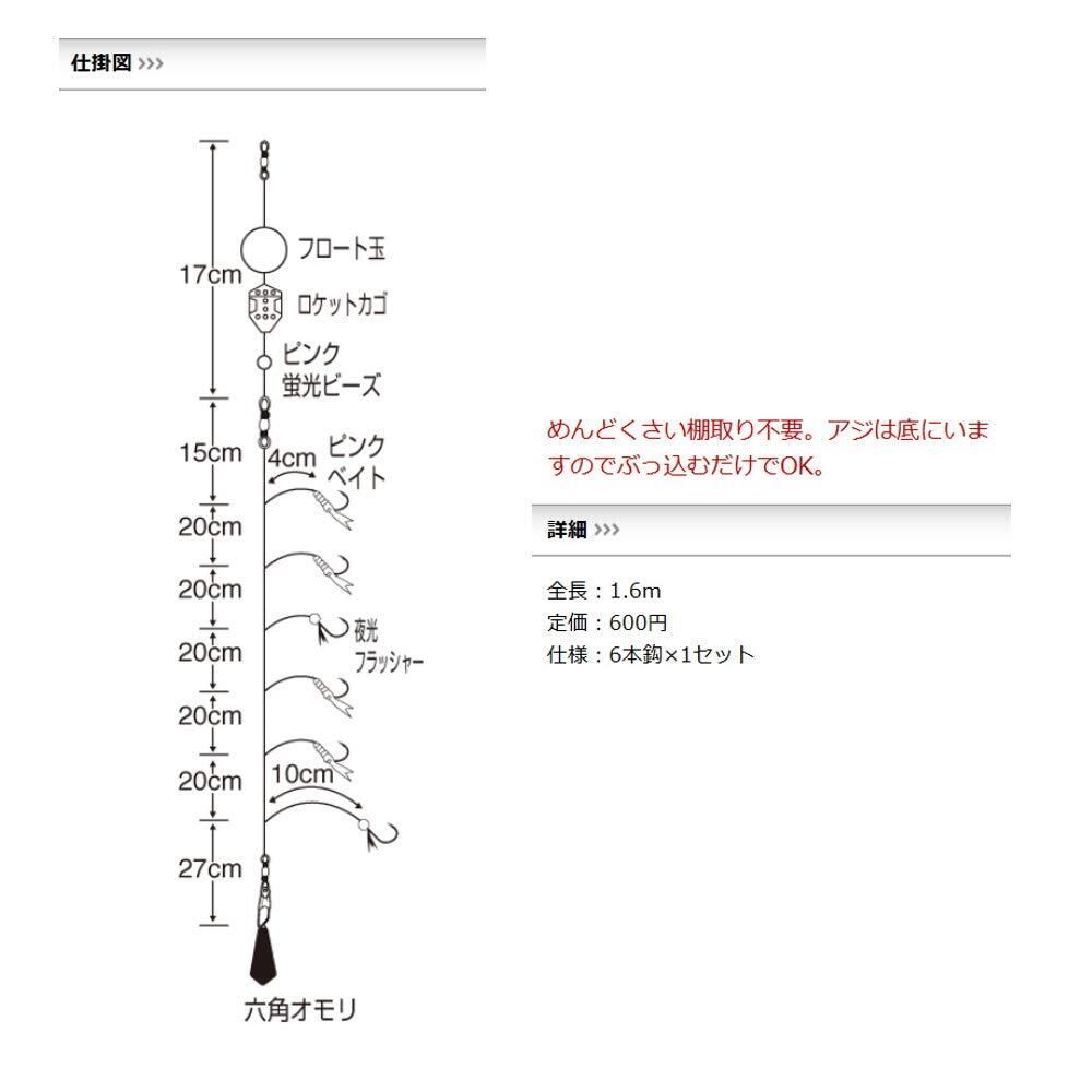 ◎セットサビキ堤防仕掛 ●S-500 ぶっこみサビキセット ・めんどくさい棚取り不要。アジは底にいますのでぶっ込むだけでOK。 エサ付け可能なちょびフラッシャー付き。オモリ付き。