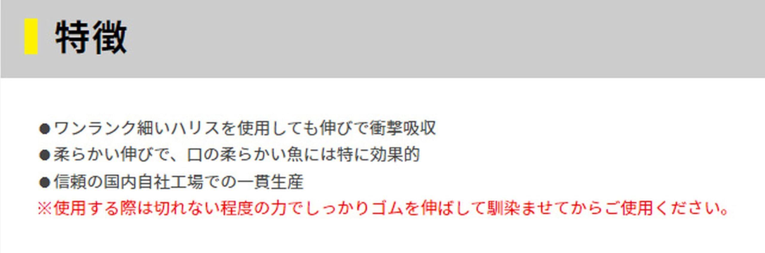 ワンランク細いハリスを使用しても伸びで衝撃吸収
