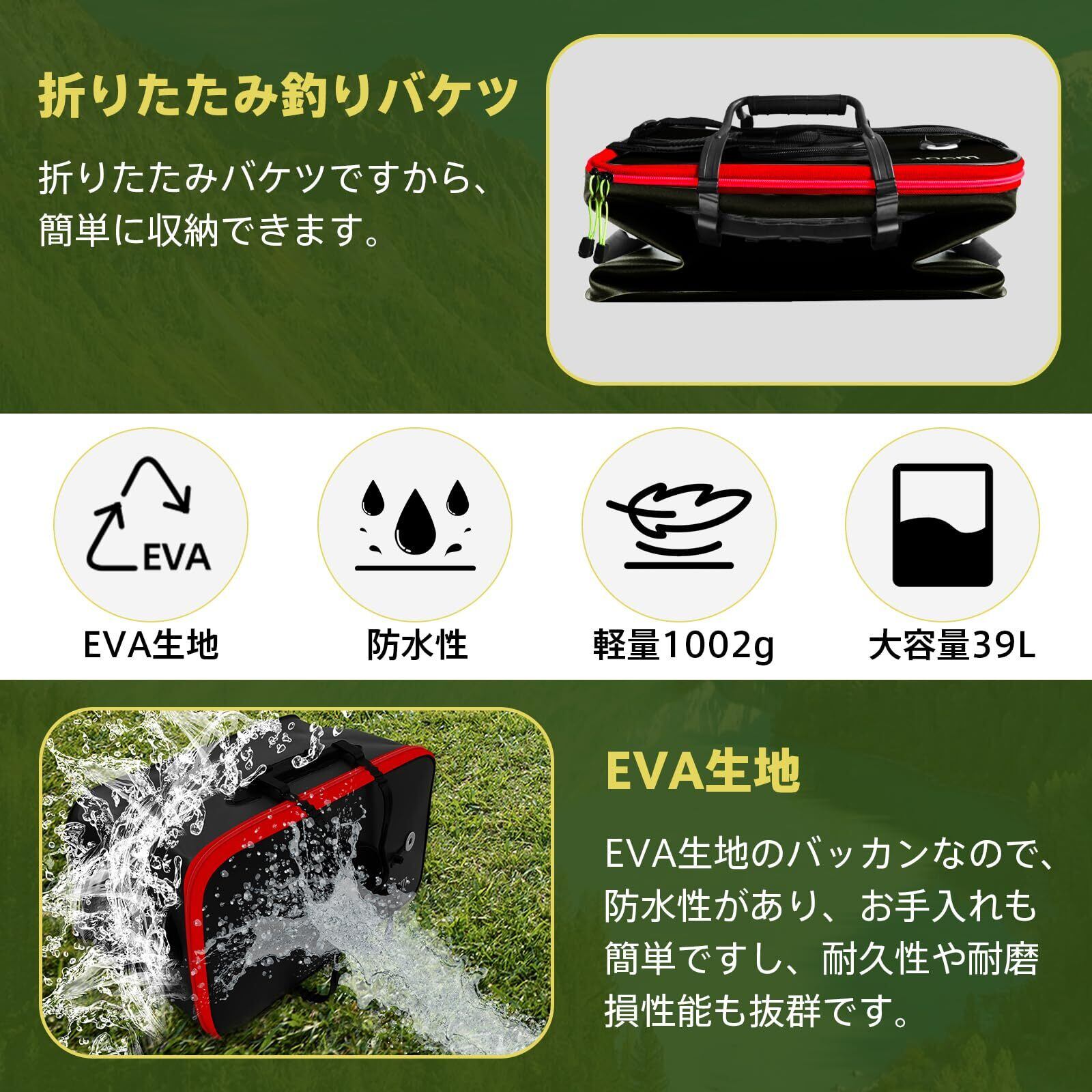 SANLIKE バッカン バケツ 水汲みバケツ 容量39L 50cm EVA素材 折りたたみ 釣り用ケース 道具入れ・エサ入れ コンパクト 軽量 ブラック キャンプ 洗車 園芸 堤防 砂場