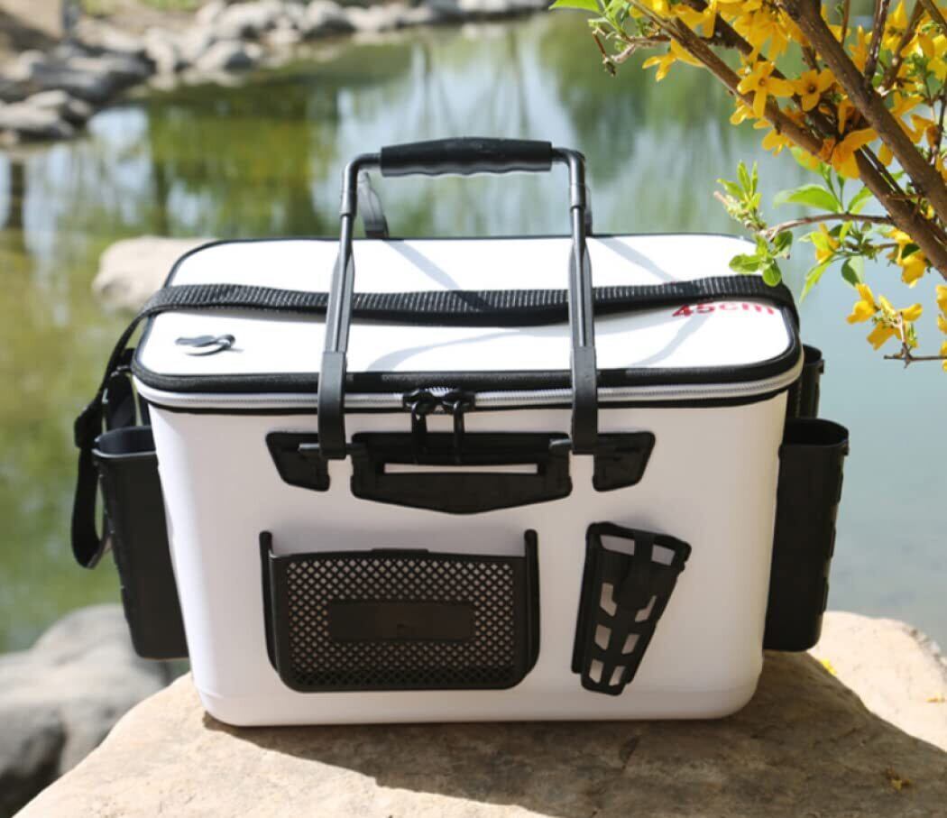 [JIMSHUINIO] バッカン 釣り バケツ タックルボックス ロッドホルダー付き タックルバック 釣りボックス EVA製水桶 大容量 多機能 プライヤーホルダー付き 収納コンテナ アウトドア (50x28x28cm)