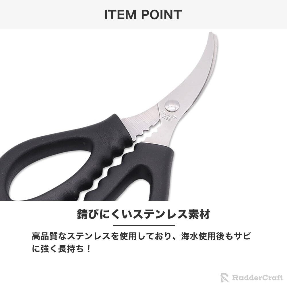 【多用途で使える万能ハサミ】魚の血抜き、エラ切り、捌き、糸切りなど、これ一本で様々な作業に対応。
