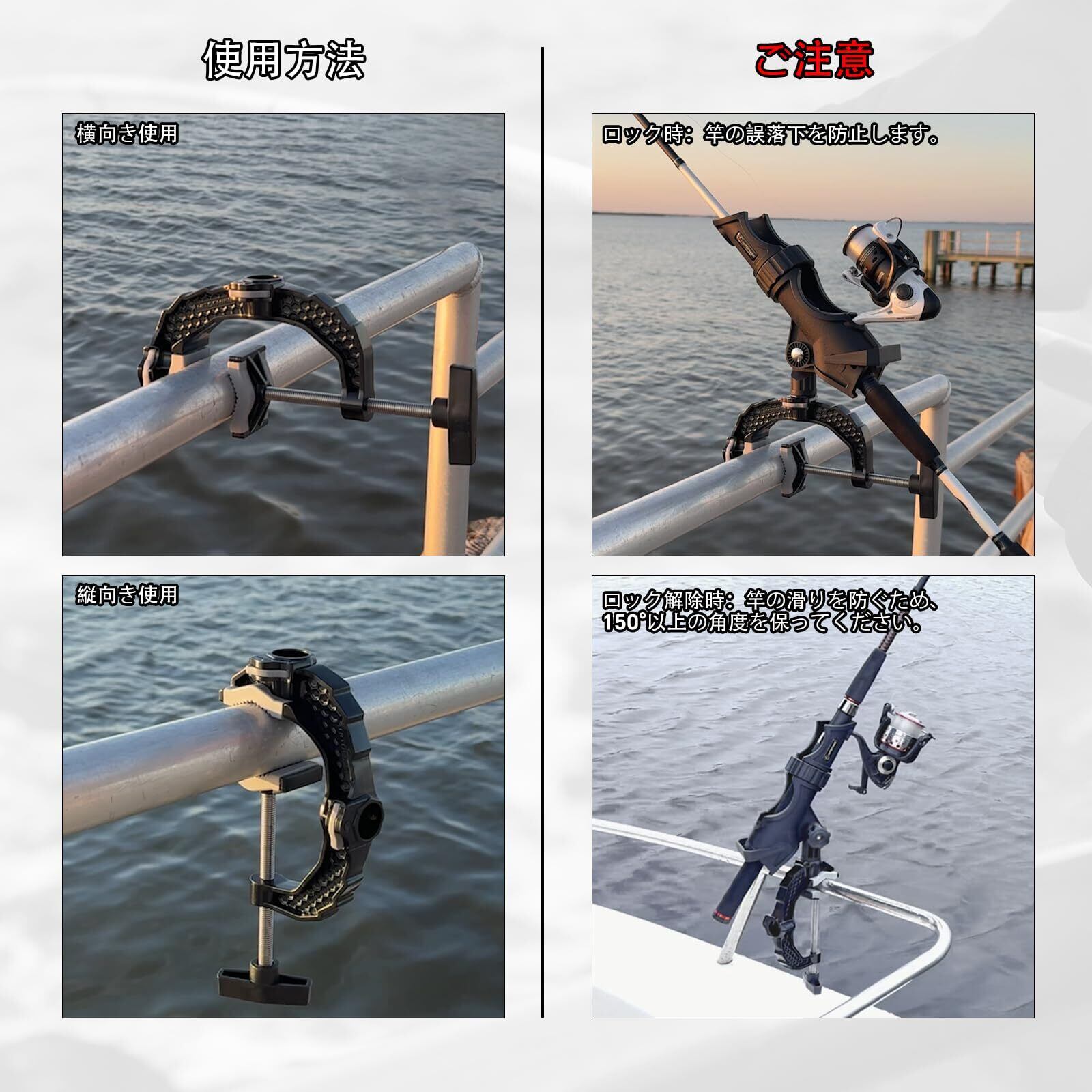 【幅広い対応力】クランプ範囲が広く、ボートの縁や手すり、桟橋など様々な場所に取り付け可能。どこでもすぐに釣りを始められます。