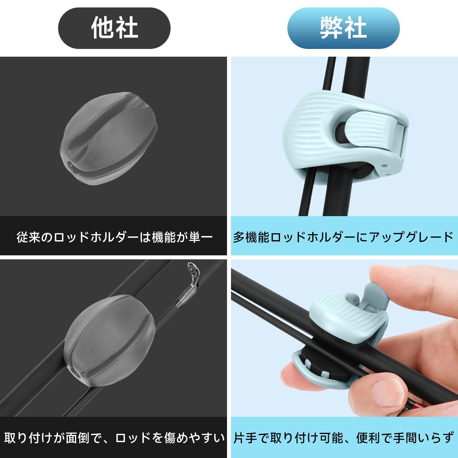 【多機能ロッドホルダー】本品はロッドの曲がり・滑り・絡みを効果的に防止します。全ての軽量2ピースルアーロッドに対応します。さらに袋入り餌の封口クリップとしても使用可能です。