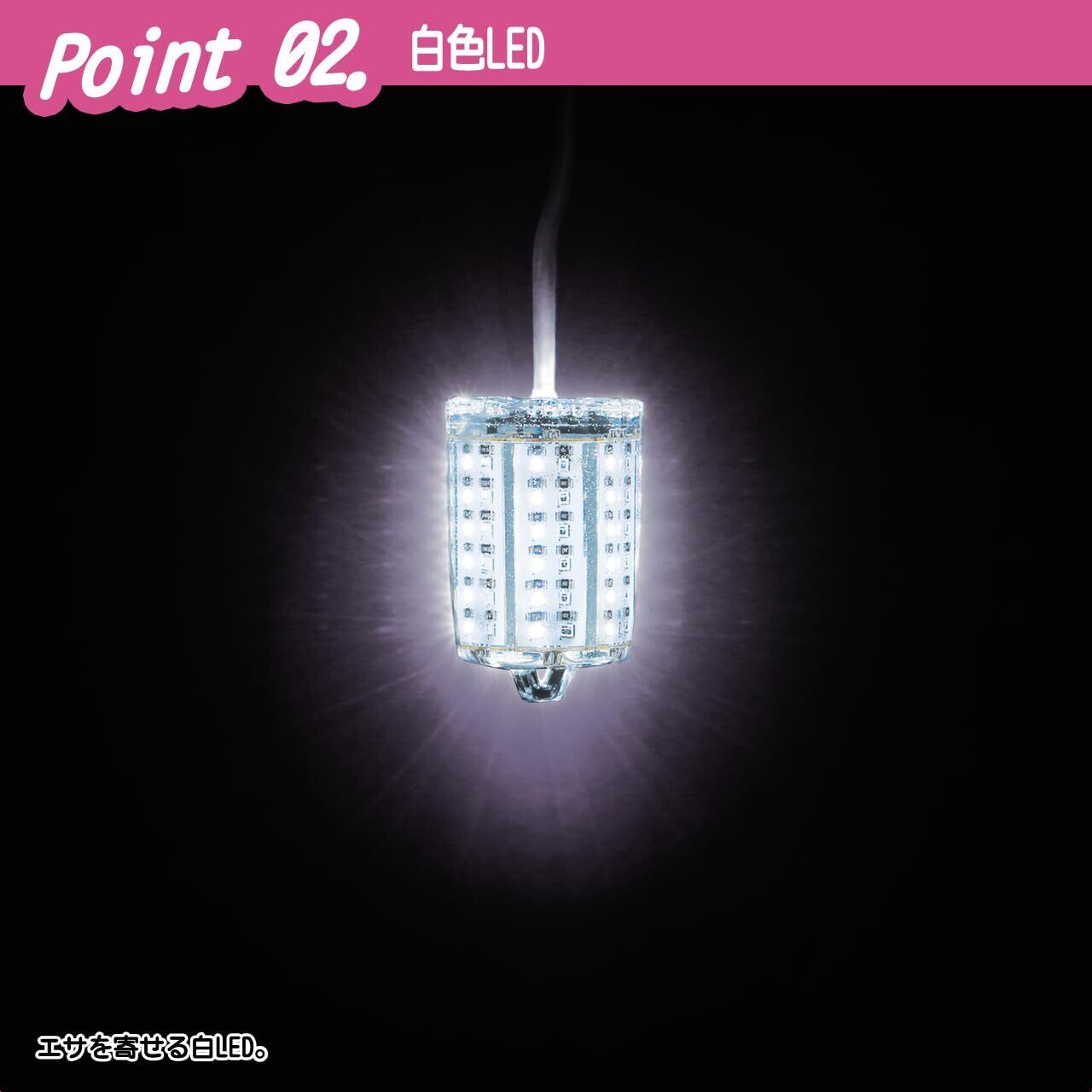 白LEDは広範囲の魚を強力に引き寄せ、緑LEDは多くの魚が好むとされる波長で、魚の捕食本能を刺激します。この2つの効果を使い分けることで、より効率的に釣果を伸ばせます。