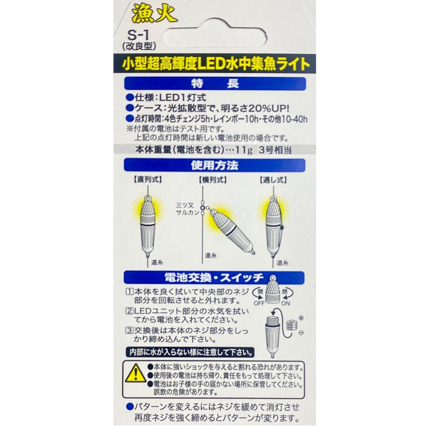 【漁火 S-1(改良)型 各色 連続点滅】水中ライト 集魚ライト/ボタン電池付【ING co.,】