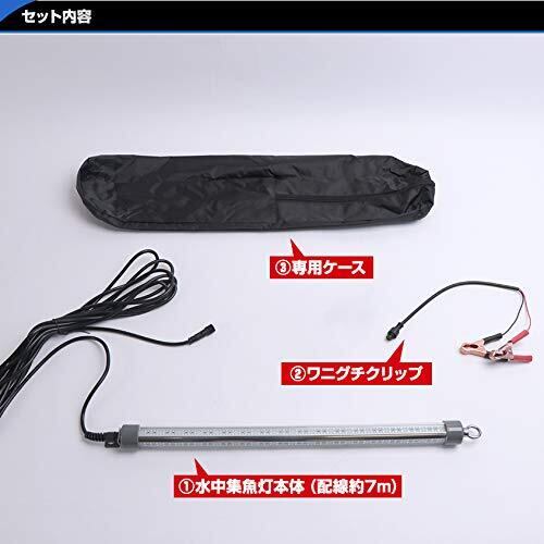 水中集魚灯 LED 集魚灯 明るい ロングサイズ 夜釣り 夜焚き 集魚ライト 夜灯 イカ シラスウナギ タチウオ アジ ナイトタイラバ イカ釣り に効果的な ライト 照明 消費電力 60w バッテリー点灯も可 12v 専用