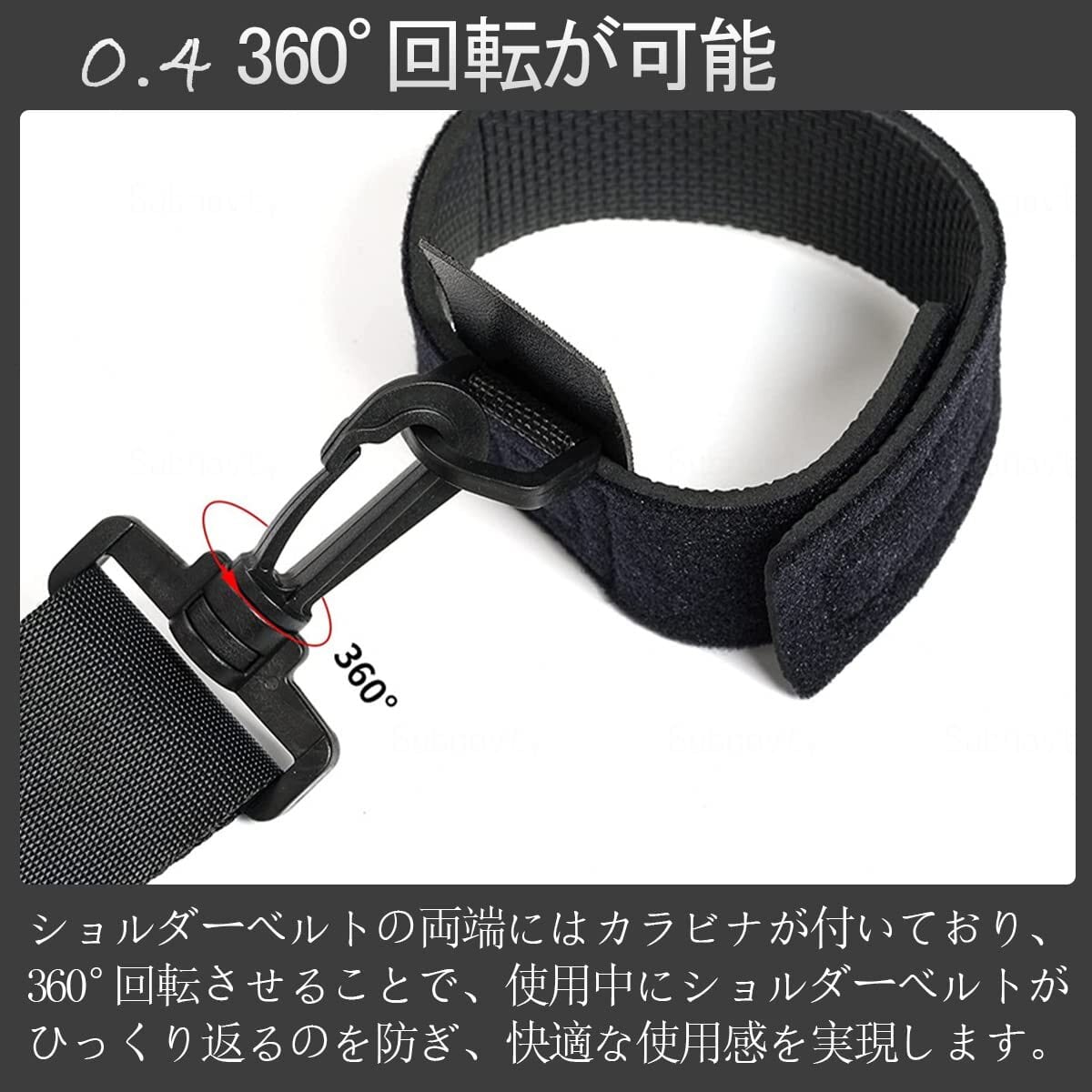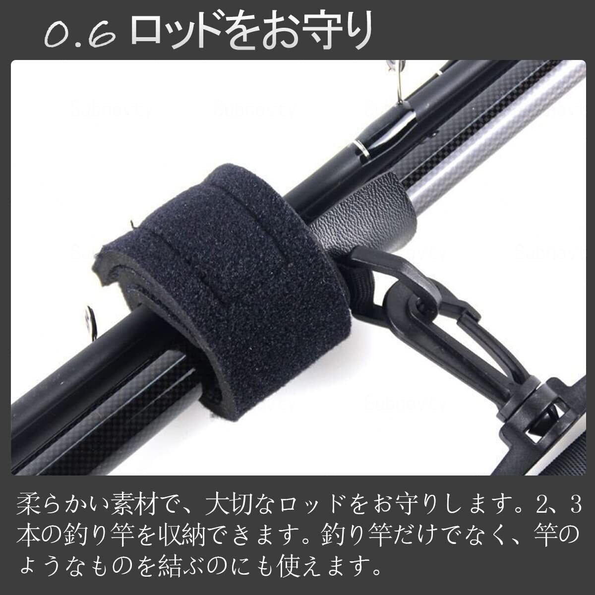 【実用的なデザイン】ショルダーベルトのねじれを防ぐために、スイベルジョイント付きのプラスチック製カラビナフックがショルダーベルトの両端に取り付けられています。ロッドベルトの裏側には、2本以上の釣り竿を保持するためのベルクロが付いています。 釣り竿だけでなく、竿のようなものを結ぶのにも使えます。