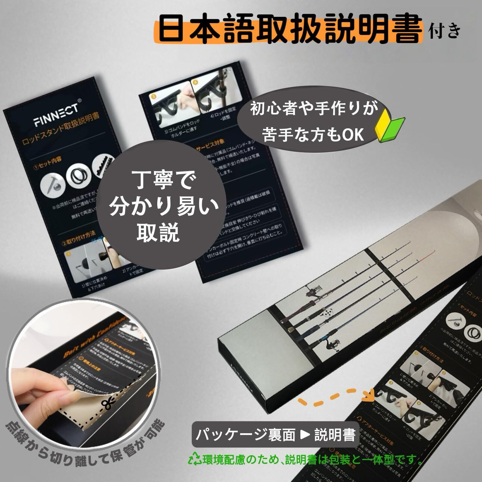 【最大6本収納・壁掛け式】ロッドスタンドは壁掛け式で省スペース設計で、最大6本のロッドを壁や天井に取り付けることができます。