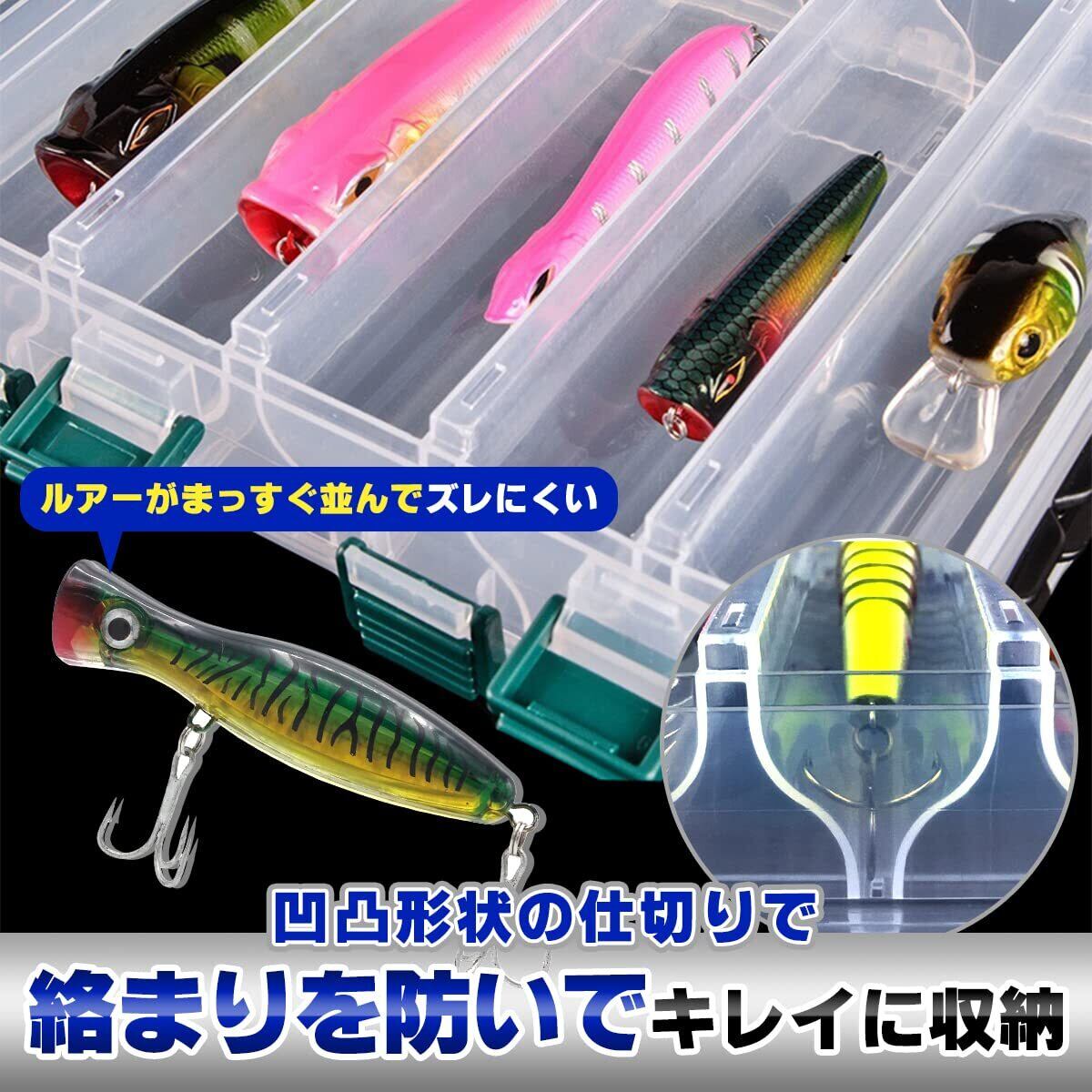 ルアーをたっぷり収納できる両面仕様のタックルボックス2個セットです。大きなものだとボックス1個あたり10本のルアーを収納できる大容量タイプです。ケース内に仕切りが完備されているため、整理整頓がされた状態で持ち運びができ、使いたいルアーをすぐに取り出すことができます。また、移動中のルアー同士の摩擦を防ぎ、傷つきにくいのも嬉しいポイントです。
