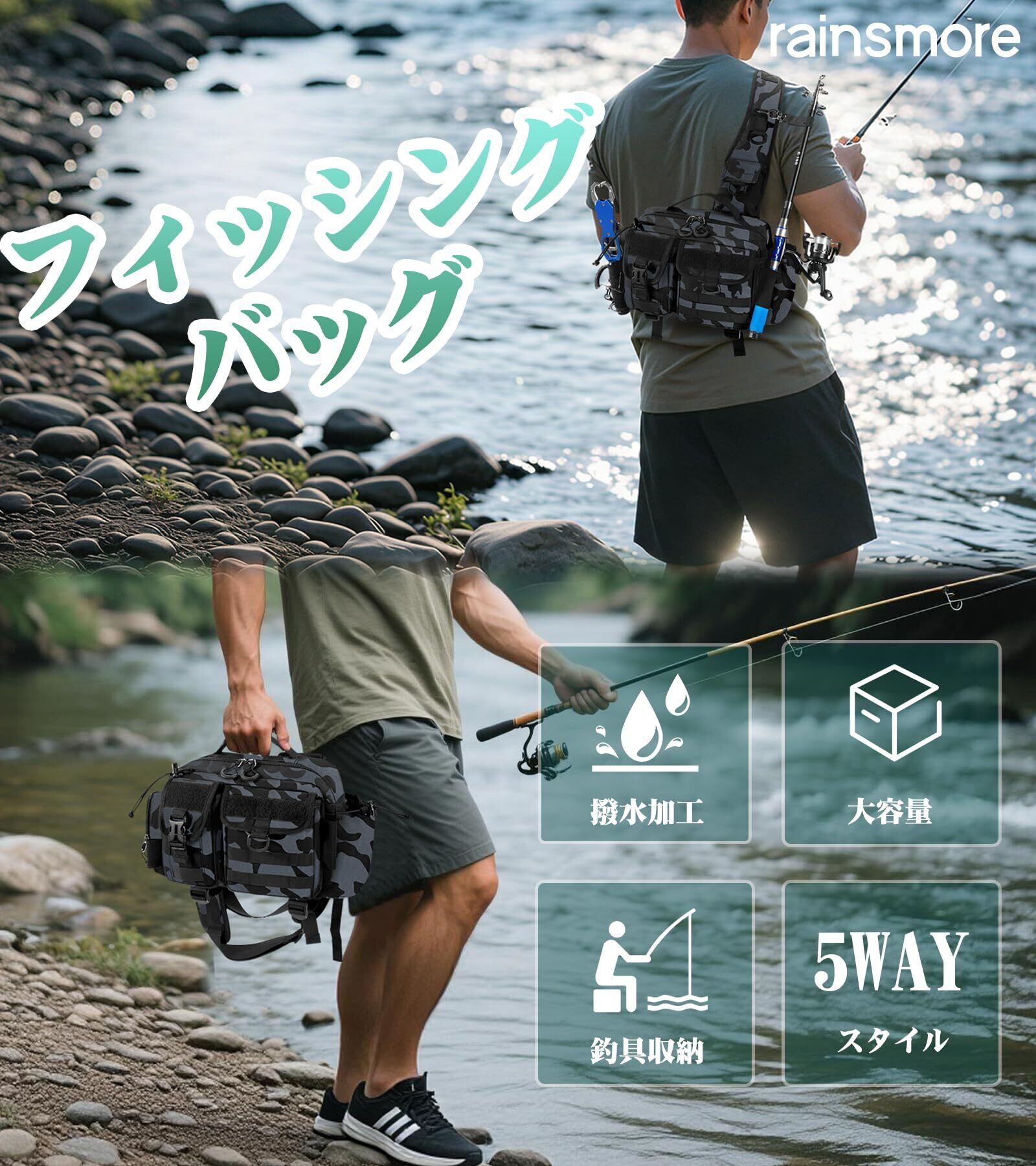 【5WAYで使い分ける多機能性と高い携帯性】フィッシングバッグは、ショルダーバッグ、ウエストバッグ、ヒップバッグ、ハンドバッグ、メッセンジャーバッグという5WAYスタイルに対応した多機能モデルです。軽量設計でありながら、大容量を実現。移動時には、電車や自転車、バイクなどでも背負いやすく、渓流釣りから堤防での夜釣り、船釣り、海釣りまで、あらゆるシーンでご活用いただけます。釣り以外でも、アウトドアのハイキングやピクニックはもちろん、日常の収納バッグとしても便利にお使いいただけます。