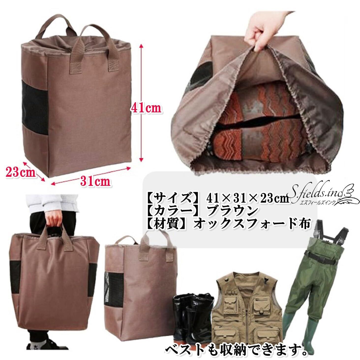 S.fields.inc ウェーダーバッグ 長靴収納袋 防水 レインブーツ 釣り 旅行 600D オックスフォード