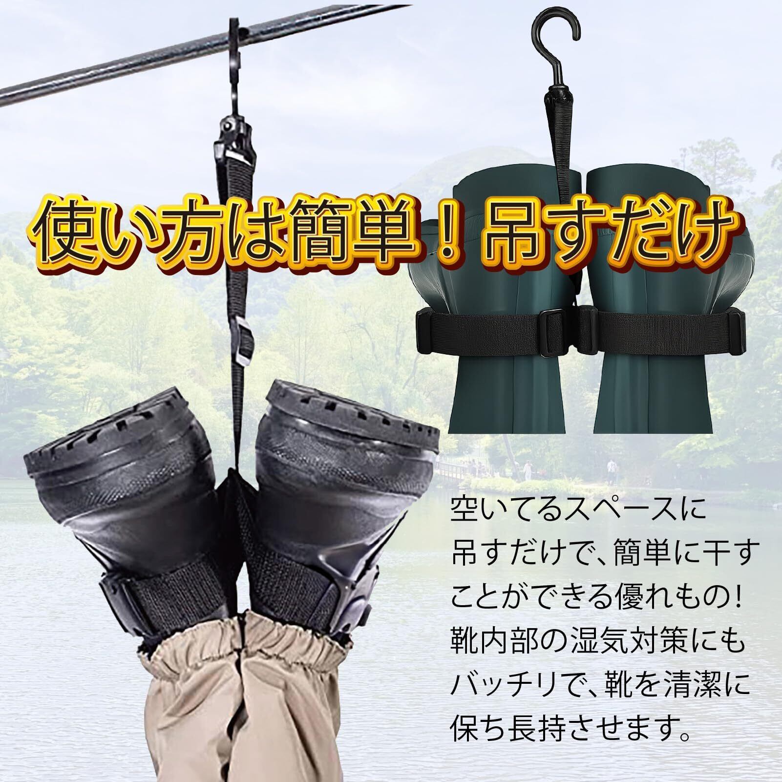 【持ち運びもラクラク】軽量&コンパクト設計で、釣り遠征やキャンプ、車内収納にもすっきり収まります。組み立て不要で、すぐに出し入れが可能。玄関やシューズラックでのブーツ干しにも便利です。