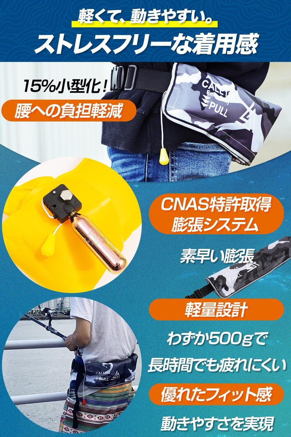BALANCE LAND(バランスランド) ライフジャケット 救命胴衣 日本設計 SOLAS国際基準認証 CNAS認証ガスボンベ搭載 手動膨張式 腰巻き CE/ISO認証取得済 フリーサイズ 反射テープ&ホイッスル付き 釣り 災害対策 水泳 緊急用 日本語説明書付属