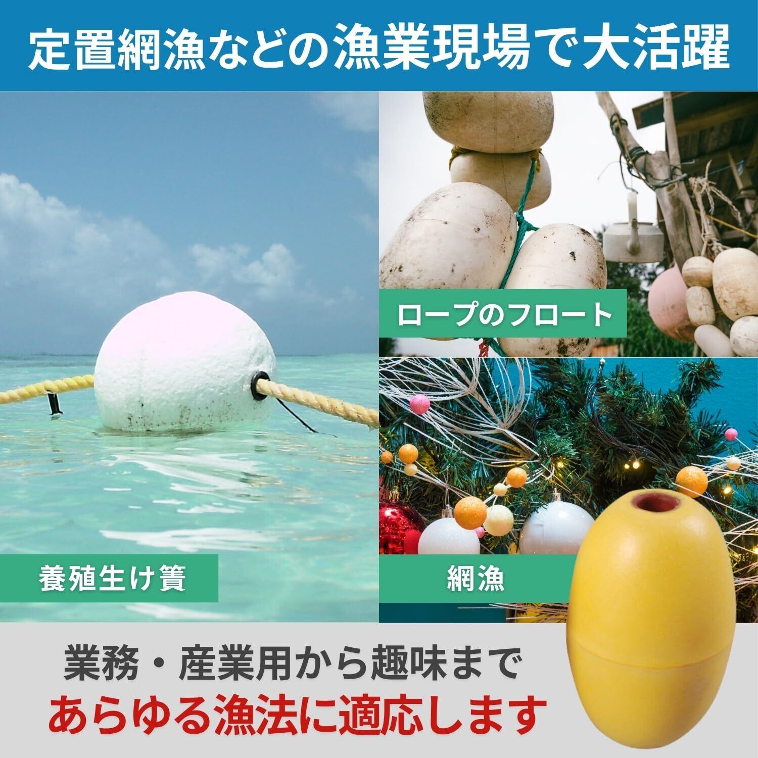 【耐久性と安全性を兼ね備えた高品質PVC素材】 厳しい海水・紫外線・潮風などの環境下でも劣化しにくい高耐久PVC製。浮力を安定して維持し、長期間安心して使用できます。水に浮く性能と丈夫さで、釣具や漁具を確実にサポートし、海中への落下や紛失を防止します。 【視認性と取り扱いやすさ】 白色の視認性の高いフロートは、ボート上や海中でも目立ち、作業効率を向上。中通し穴(内径18mm)付きで、アンカーロープや係船ロープへの取り付けも簡単。ブイや浮子としてもすぐに活用できます。