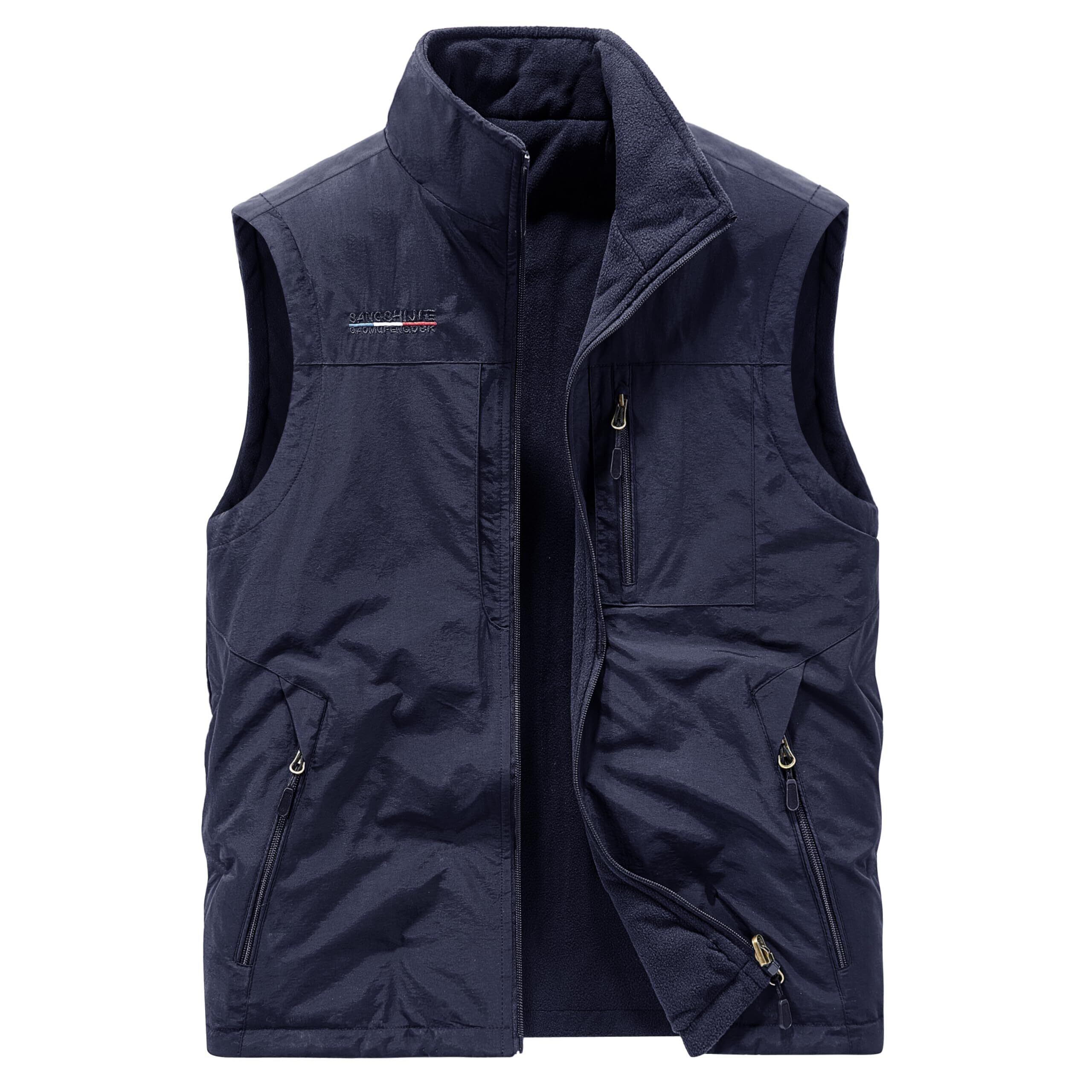 [Kayiyasu] ベスト メンズ フリースベスト リバーシブル 両面着用 アウトドアベスト 防寒 暖かい 裹起毛 フィッシングベスト 多ポケット 多機能 M-5XL 大きいサイズ 撥水 作業用 釣り用 撮影用 キャンプ 登山 秋 冬