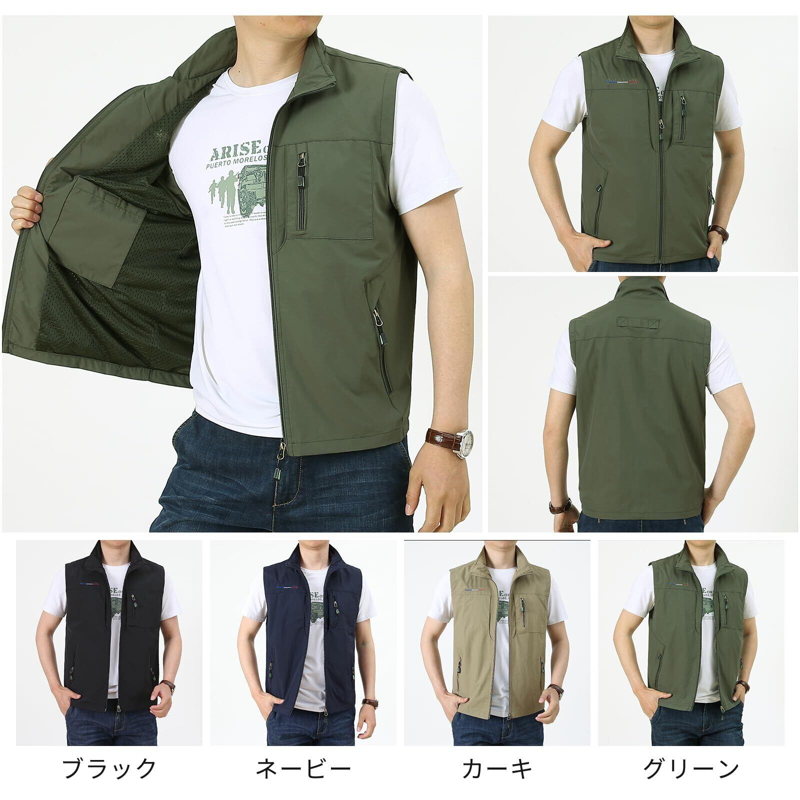 [Manatsulife] メンズ ベスト メッシュ 釣りベスト 作業用 多ポケット 多機能 撥水 通気 カメラマンベスト フィッシング アウトドア 登山 おしゃれ 1906