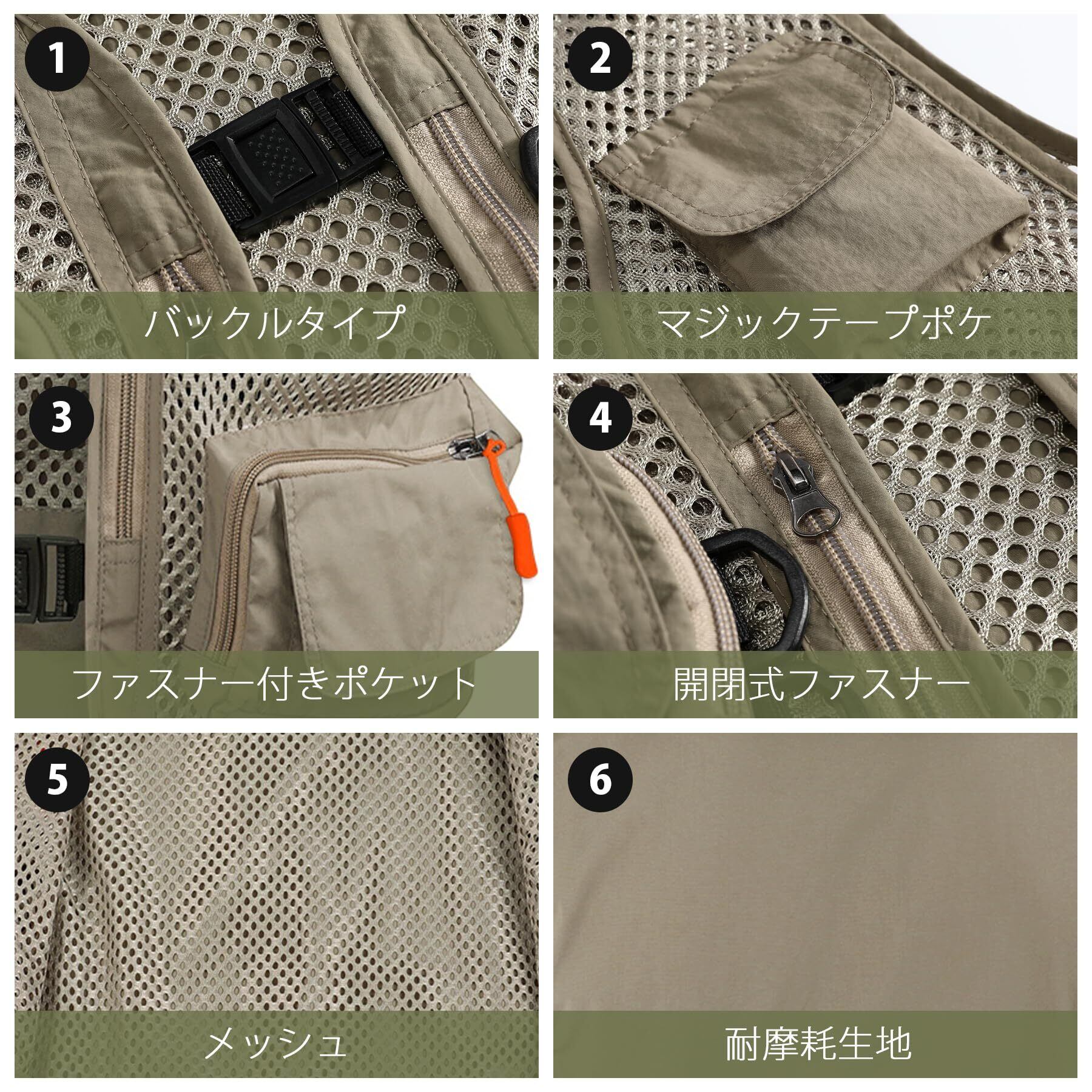 [AOWOFS] メンズ メッシュベスト バックルタイプ 便利 アウトドアベスト 夏 軽量 通気 多機能 カメラマンベスト お釣り 撮影 作業用 薄手 射撃 登山 多ポケット アウトドア 大きいサイズ