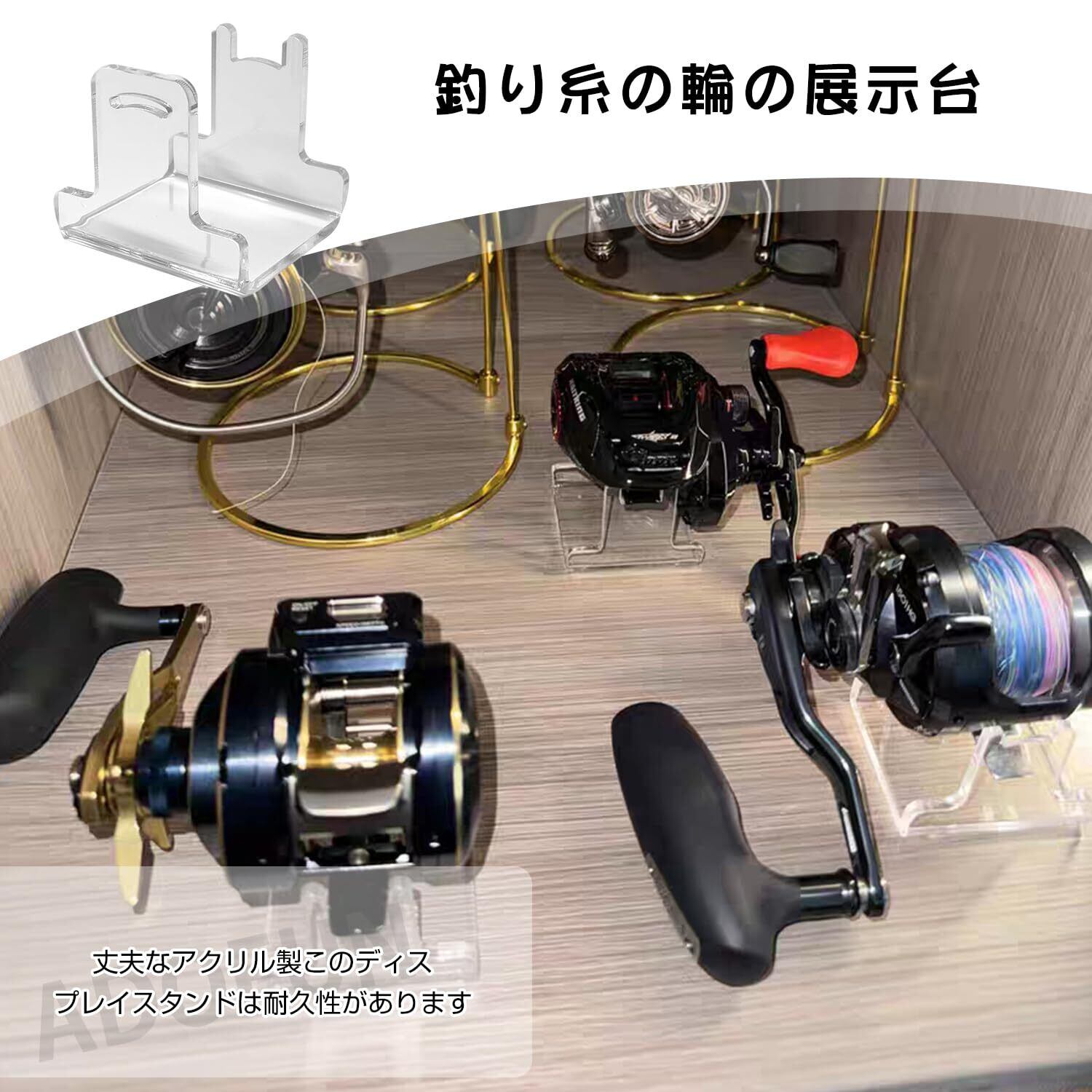 アクリル リールスタンド フィッシングギア収納 リールホルダー ベイトリール ラック 餌ショースタンド ルアーディスプレイスタンド クリア 保管 収納 アクリル素材 家用および釣具店向け