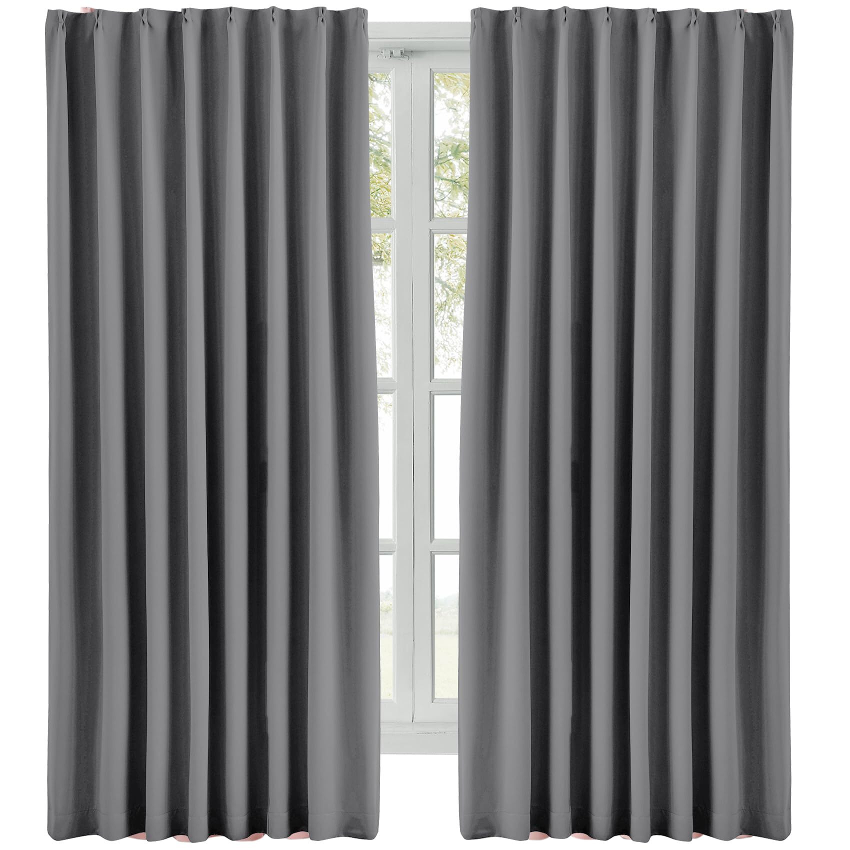 Hansleep カーテン 遮光カーテン 1級遮光 厚手 断熱 防寒 防音 無地 洗濯可能 寝室 リビング 2枚組 (グレー, 幅100cm×丈178cm)