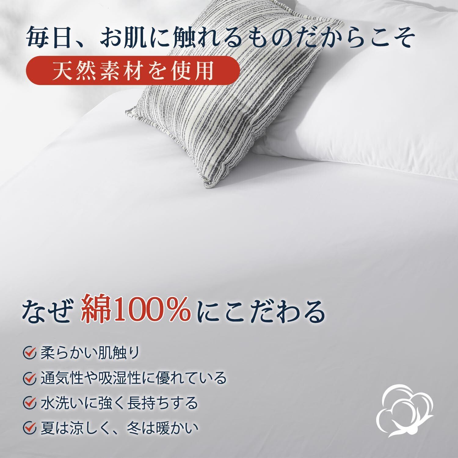 【オールシーズン対応】水に強くて耐久性が高いので、衛生的に長く愛用できます。保湿性が高かく静電気が起きづらいことで、どんな季節でも快適な寝心地になります。