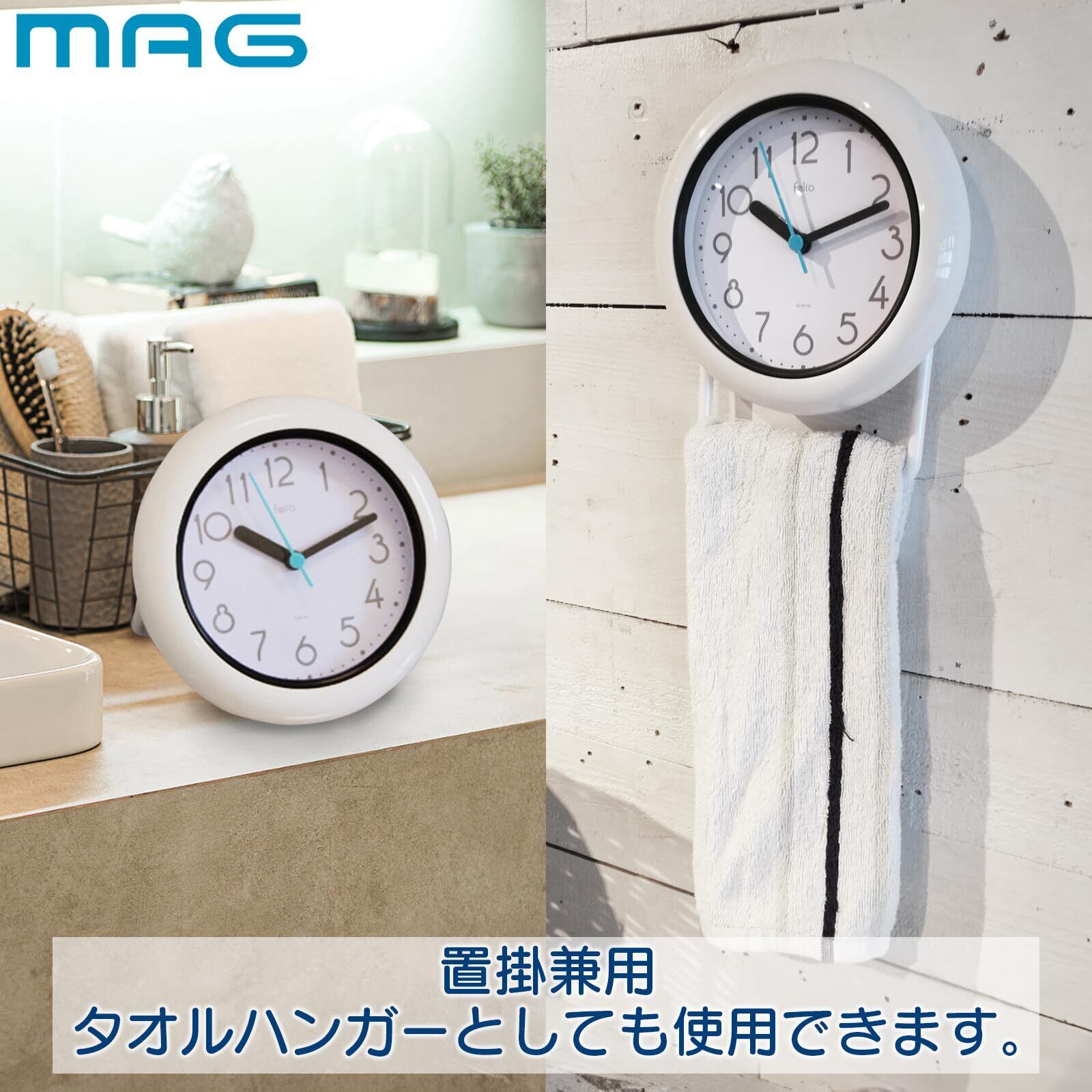 MAG(マグ) Felio(フェリオ) バスクロック生活防水 防塵 IP52 お風呂 水回り アナログ ステップ秒針 置き掛け兼用 バブルコート ブルー FEW130 WH ノア精密