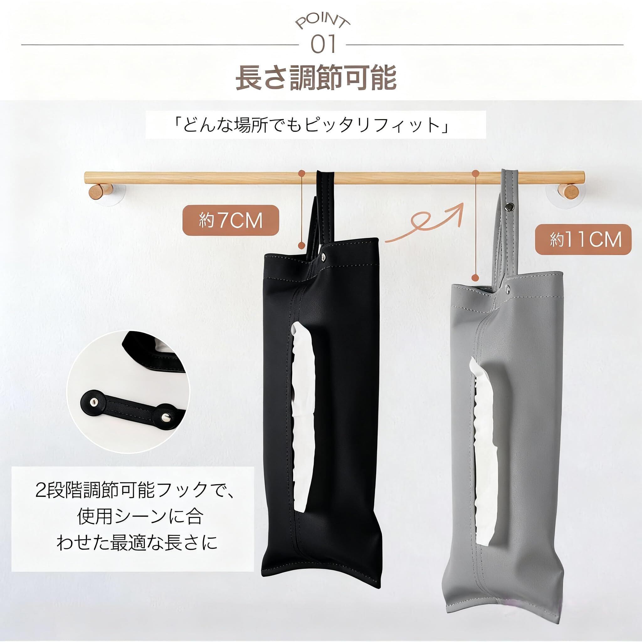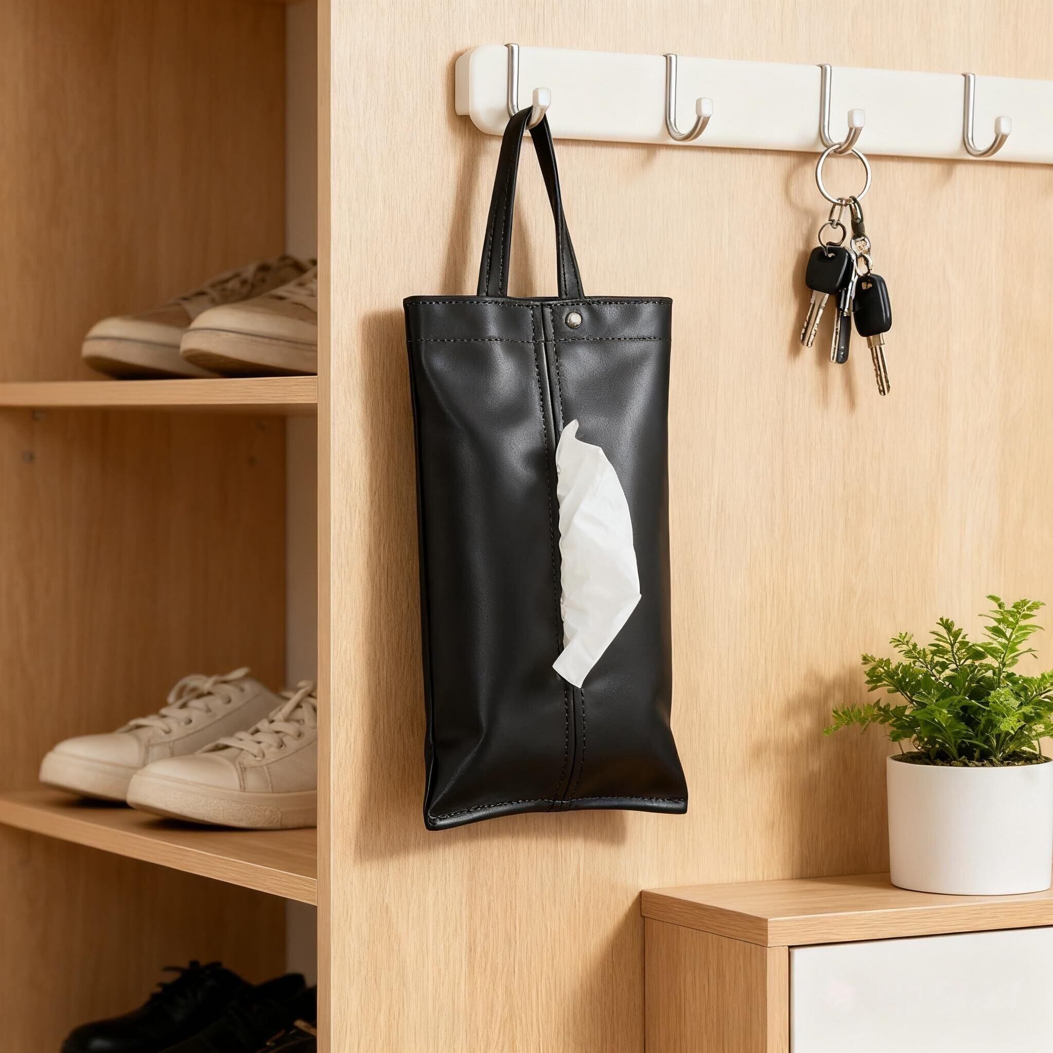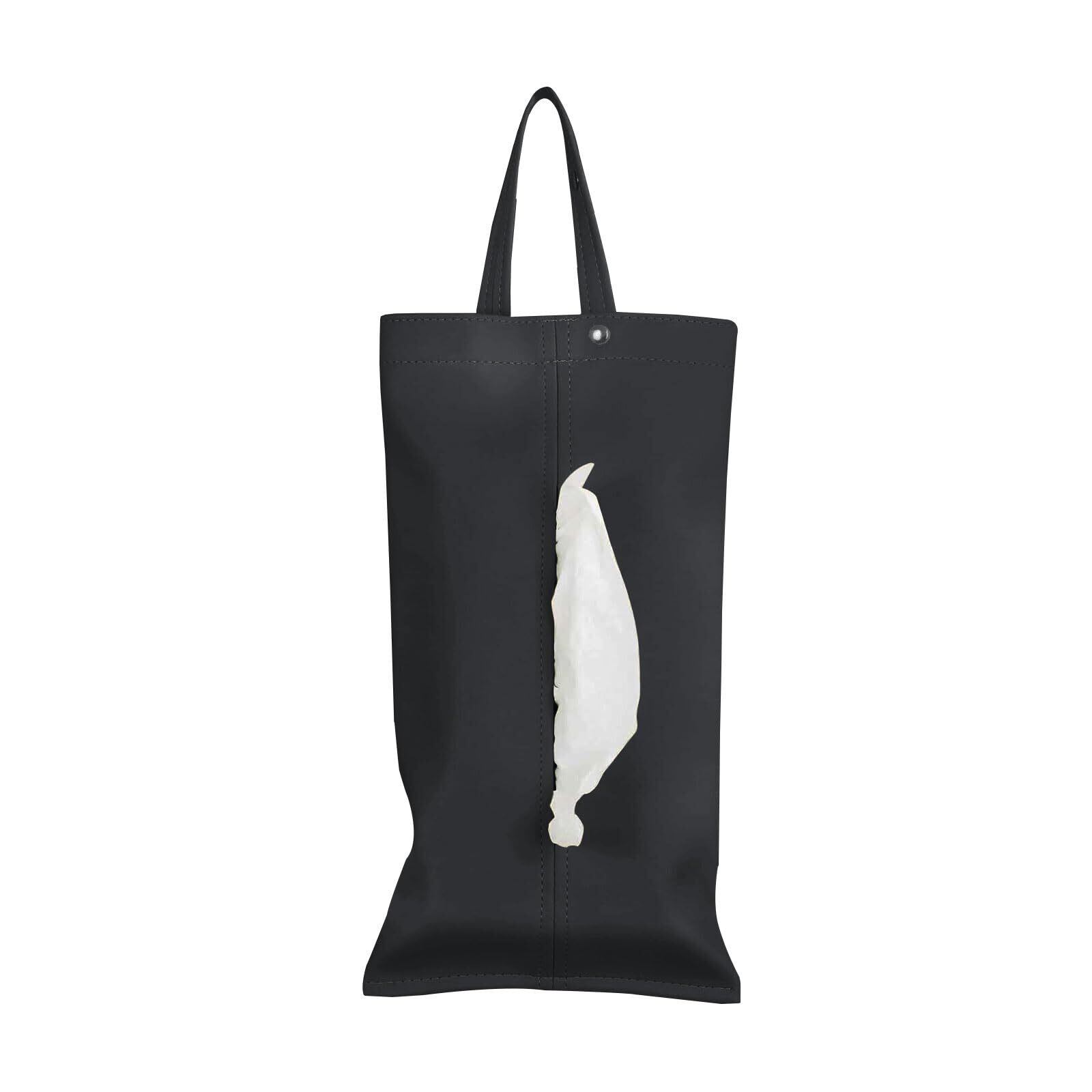 ティッシュケース 吊り下げ 防水 車用 おしゃれ ティッシュカバー 壁掛け収納 キッチン 洗面所 ベビーカー 省スペース 生活感隠し マスク収納 インテリアに馴染む (ブラック, 1個)