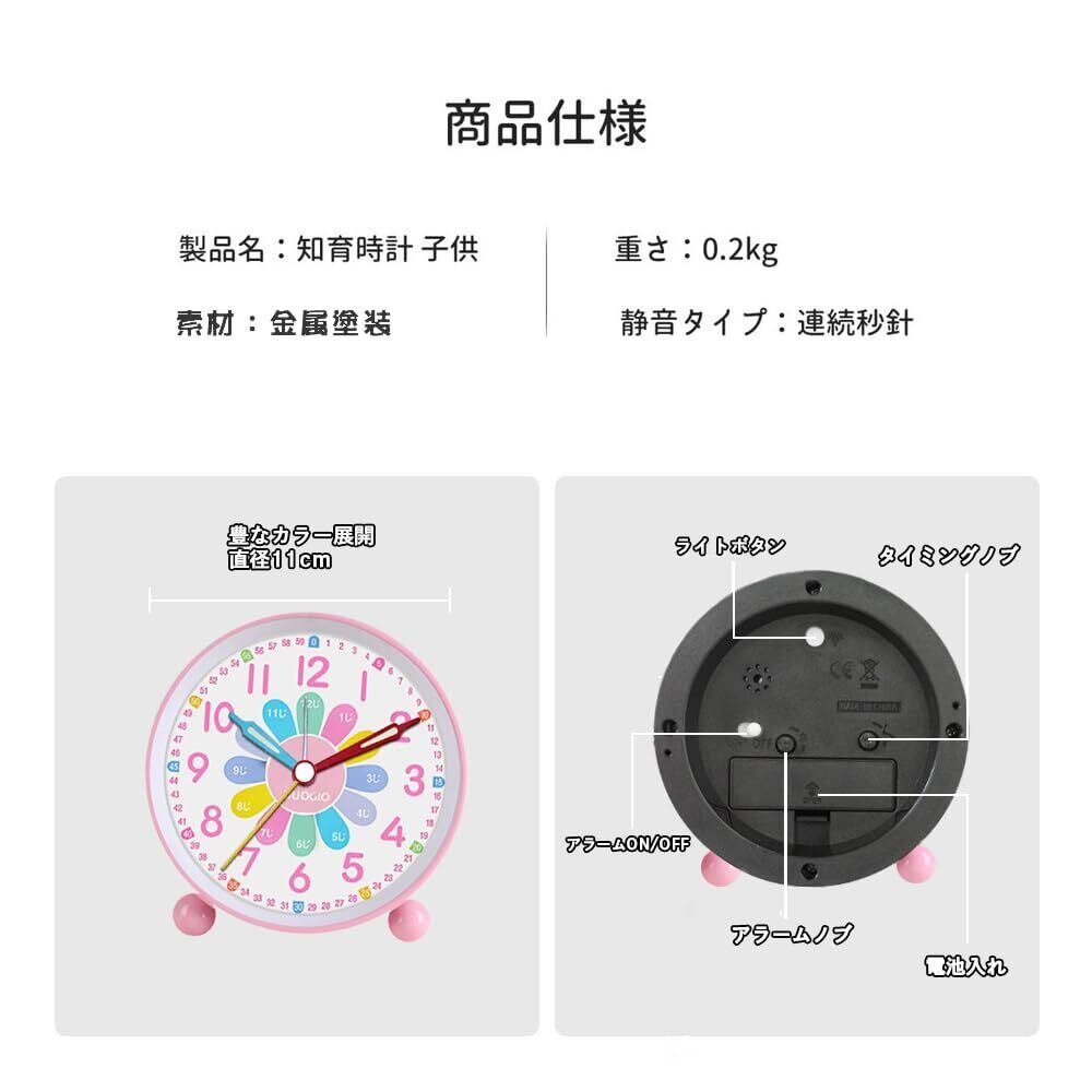 【反時計回りに設定アラーム時間】この学習用アナログ時計がアラーム機能があります。アラーム設置がとても簡単です。ボタンを反時計回りに回してアラームを設定すると、アラームがより正確な時間で鳴らす。子供や女の子は定時に起きる、学ぶ或いは遊ぶのよい生活習慣を育てることができます。子供の時間管理に便利の学習時計です。●ご注意:時計回りにアラームを設定すると、鳴動時間が間違いになるだけでなく、目覚まし時計の時間にも影響します。