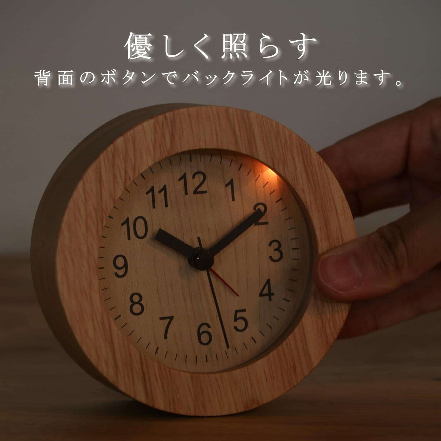不二貿易(Fujiboeki) 置き時計 目覚まし時計 アナログ 幅10.2cm ナチュラル 天然木 静音式 アラーム付き ライト付 卓上 ラウンド ウッド 36699
