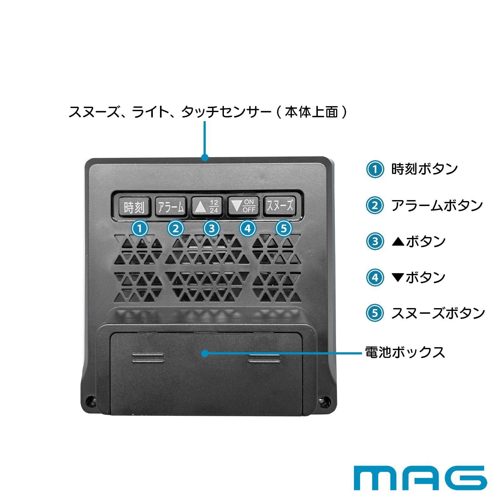 MAG(マグ) 目覚まし時計 置き時計 デジタル 温度計 湿度計 温湿度計 カレンダー 電子音 アラーム スヌーズ ライト ブラック カッシーニ AT-726 BK-Z ノア精密
