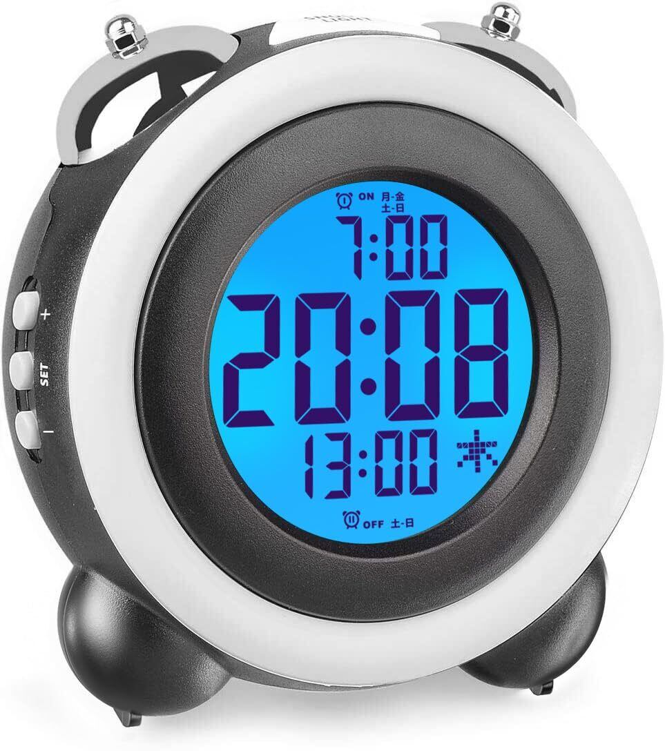 目覚まし時計 大音量 デジタル ベル ダブルアラーム スヌーズ 機能 LED バックライト アラーム 2つ LCD デジタル ディスプレー 電池式 卓上 置き時計 多機能スヌーズボタン/デュアルアラーム/チクチクしない/乾電池使用 日本語表示【意匠登録済み】