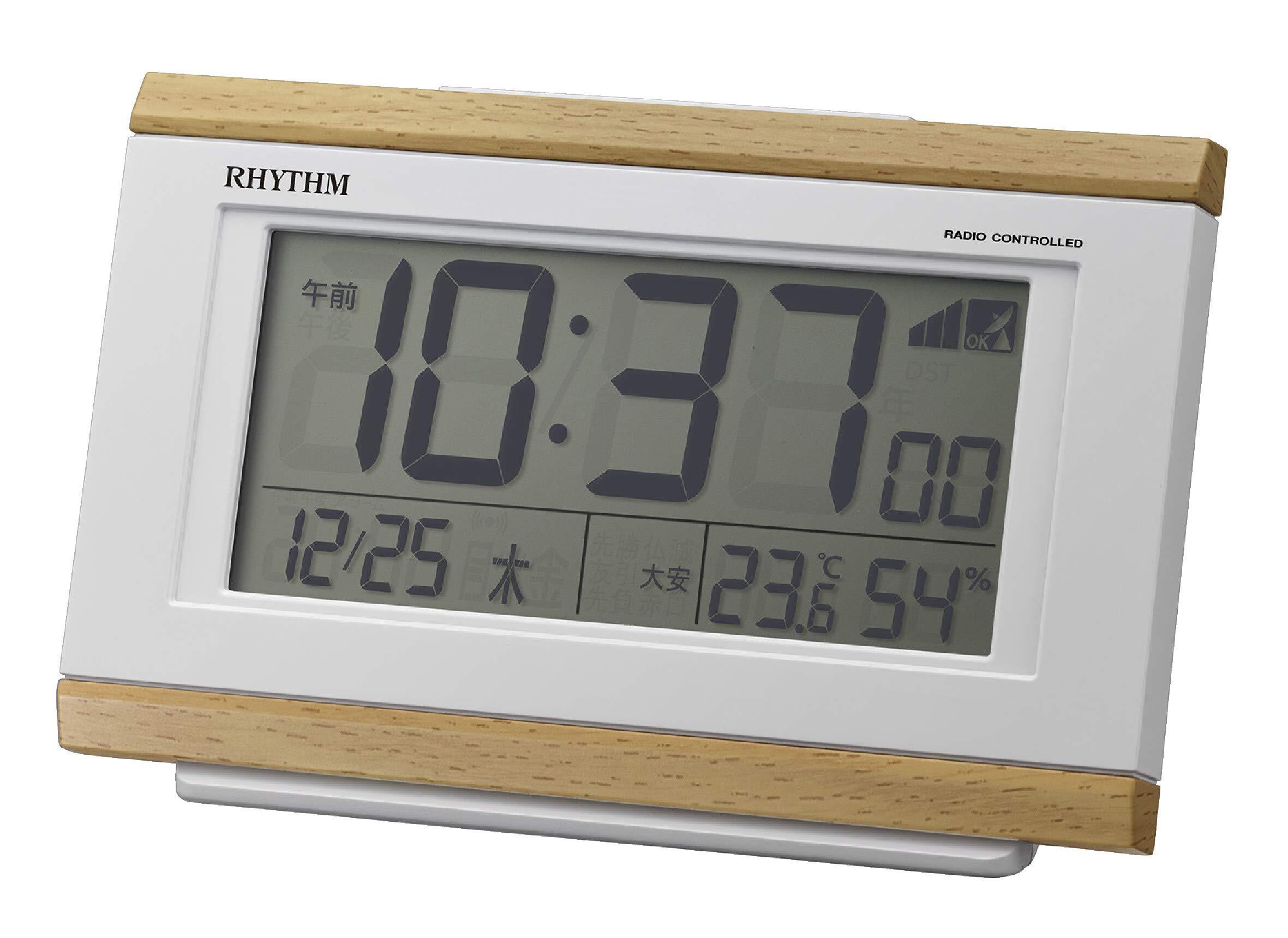リズム(RHYTHM) 目覚まし時計 電波時計 電子音アラーム 温度 湿度 カレンダー 六曜 ライト付き ライトブラウン 8.9x13.5x4.4cm 8RZ161SR07