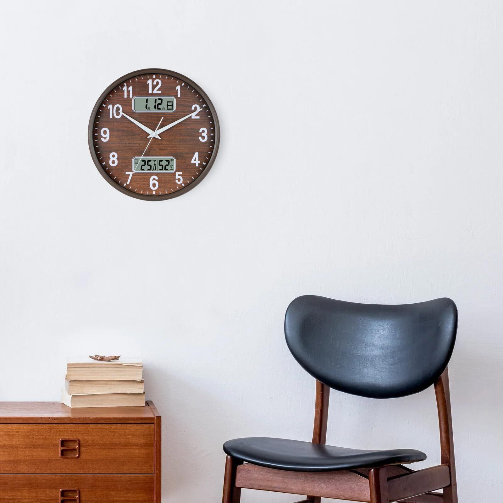 電波時計 直径32cm 挂け時計 アナログ カレンダー付き 温度・湿度表示 静音 連続秒針 コーヒー色