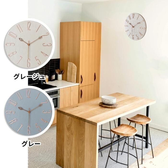 北欧掛け時計 壁掛け時計 静音 木製時計針 曲がらない おしゃれ かわいい 見やすい 軽い 軽量 シンプル 大きい 静か アナログ プレゼント ギフト インテリア (グレージュ(文字盤)×ゴールド(文字))