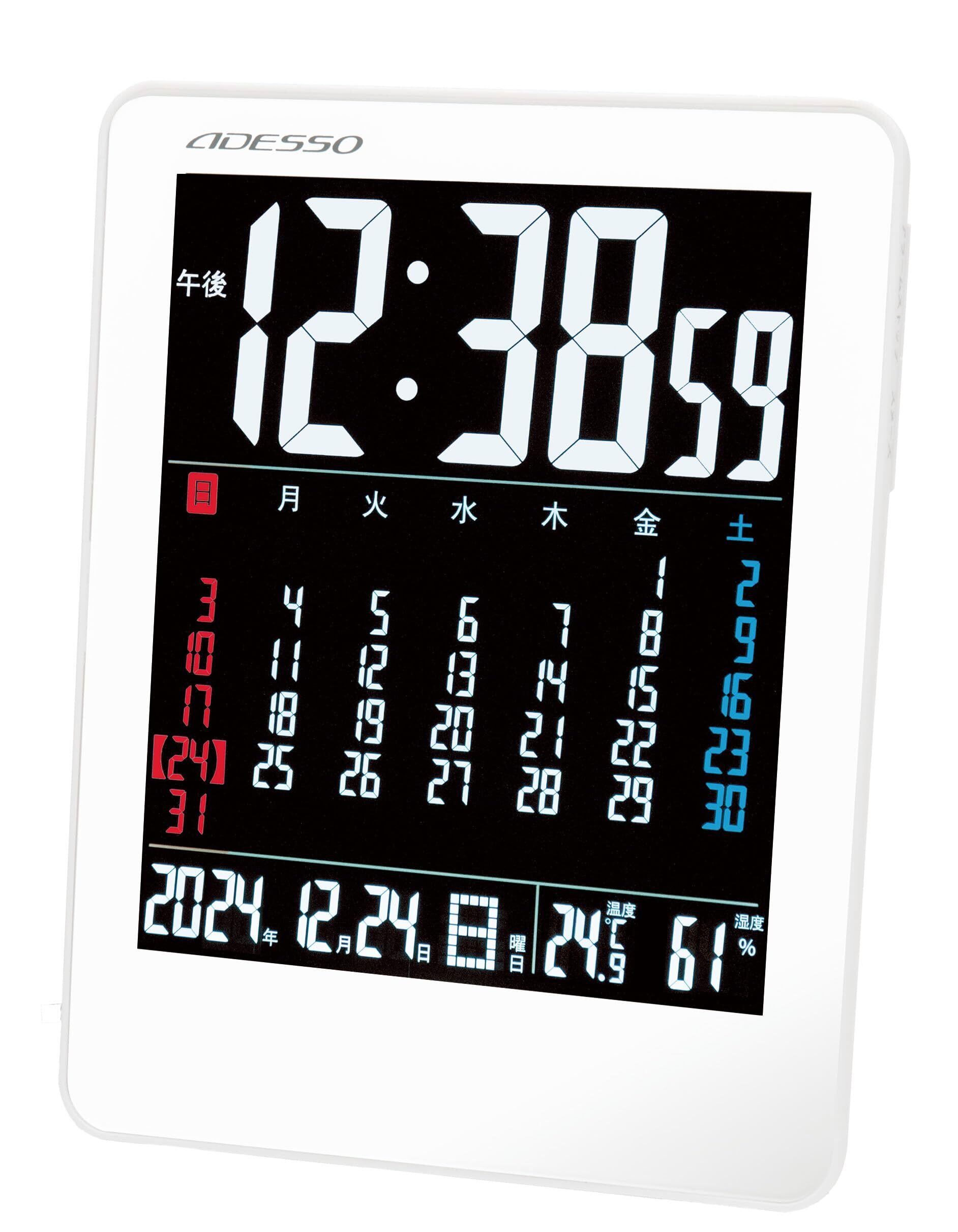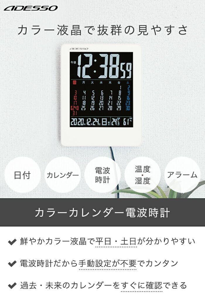 ADESSO(アデッソ) 置き時計 電波 デジタル カラーカレンダー 電波時計 温度 湿度 曜日 日付表示 置き掛け兼用 ホワイト NA-945