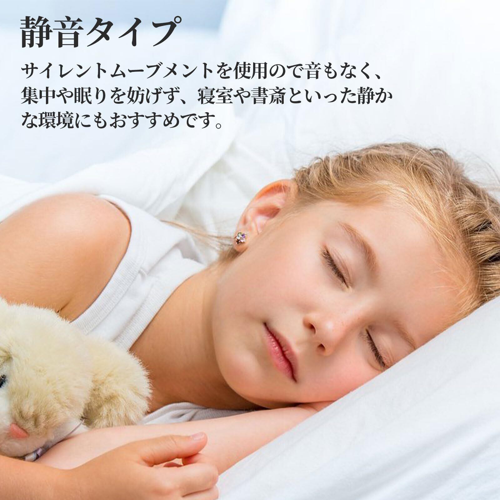 【静音スイープ機芯】「カチカチ」という音がしない静音タイプを採用。静かな深夜の入浴や半身浴中も、秒針の音が気にならず、心ゆくまでリラックスできます。浴室だけでなく、寝室や書斎のミニ時計としても最適です。