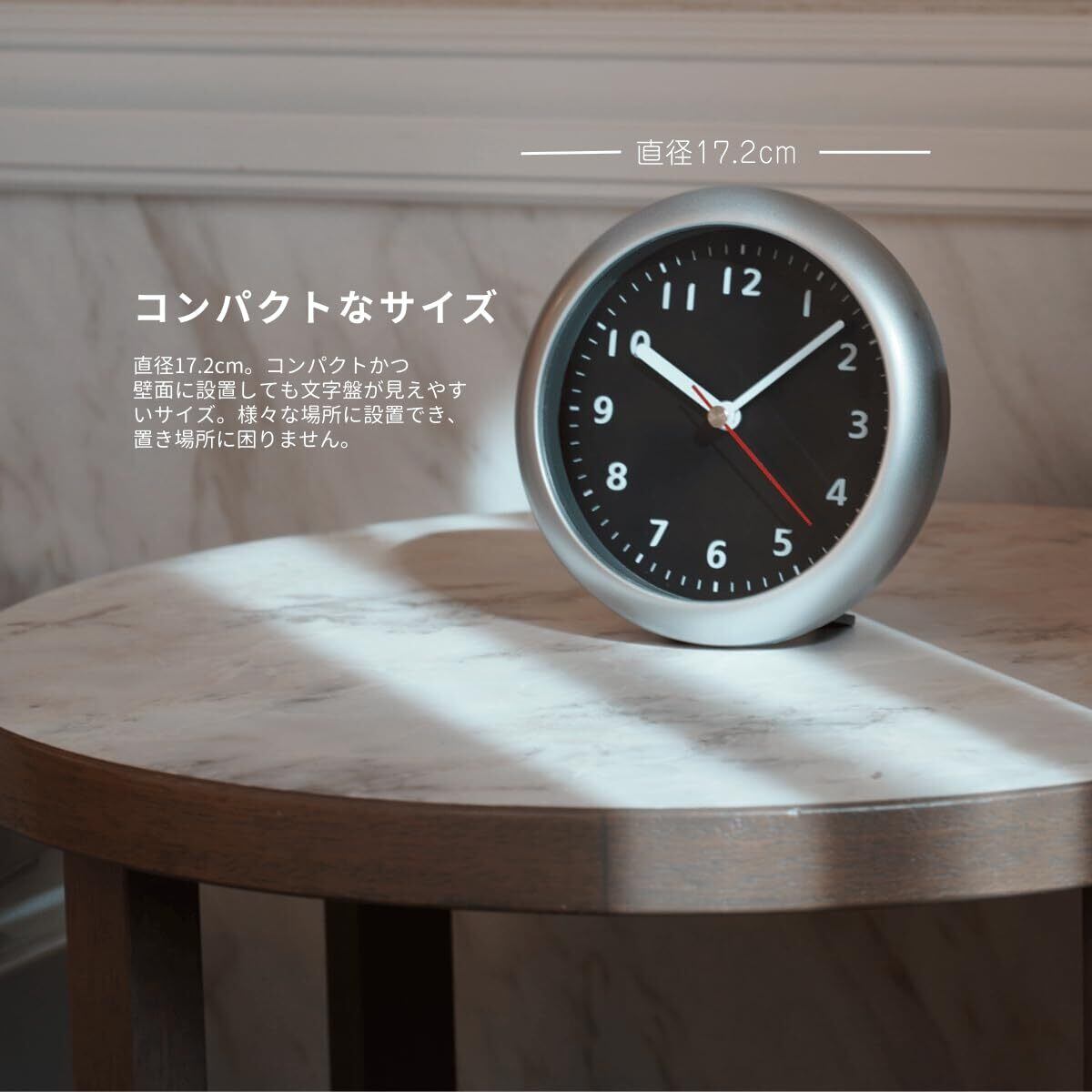 【サイズ】直径17.2cmのちょうどいい大きさの時計です。電池式(単三電池1つ)