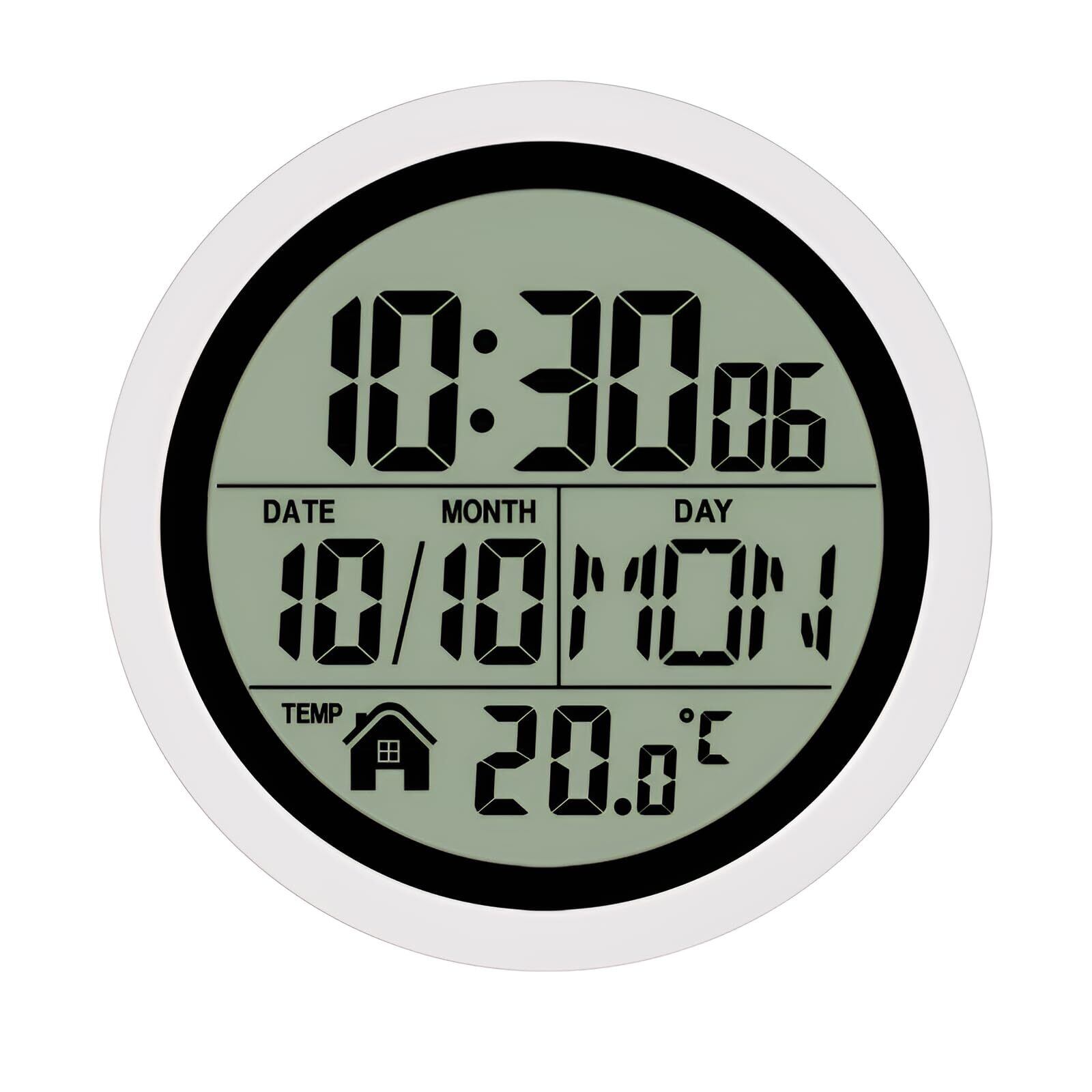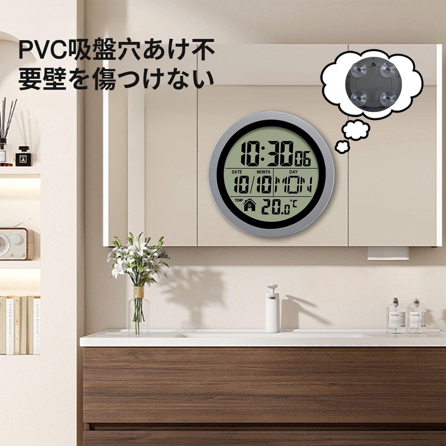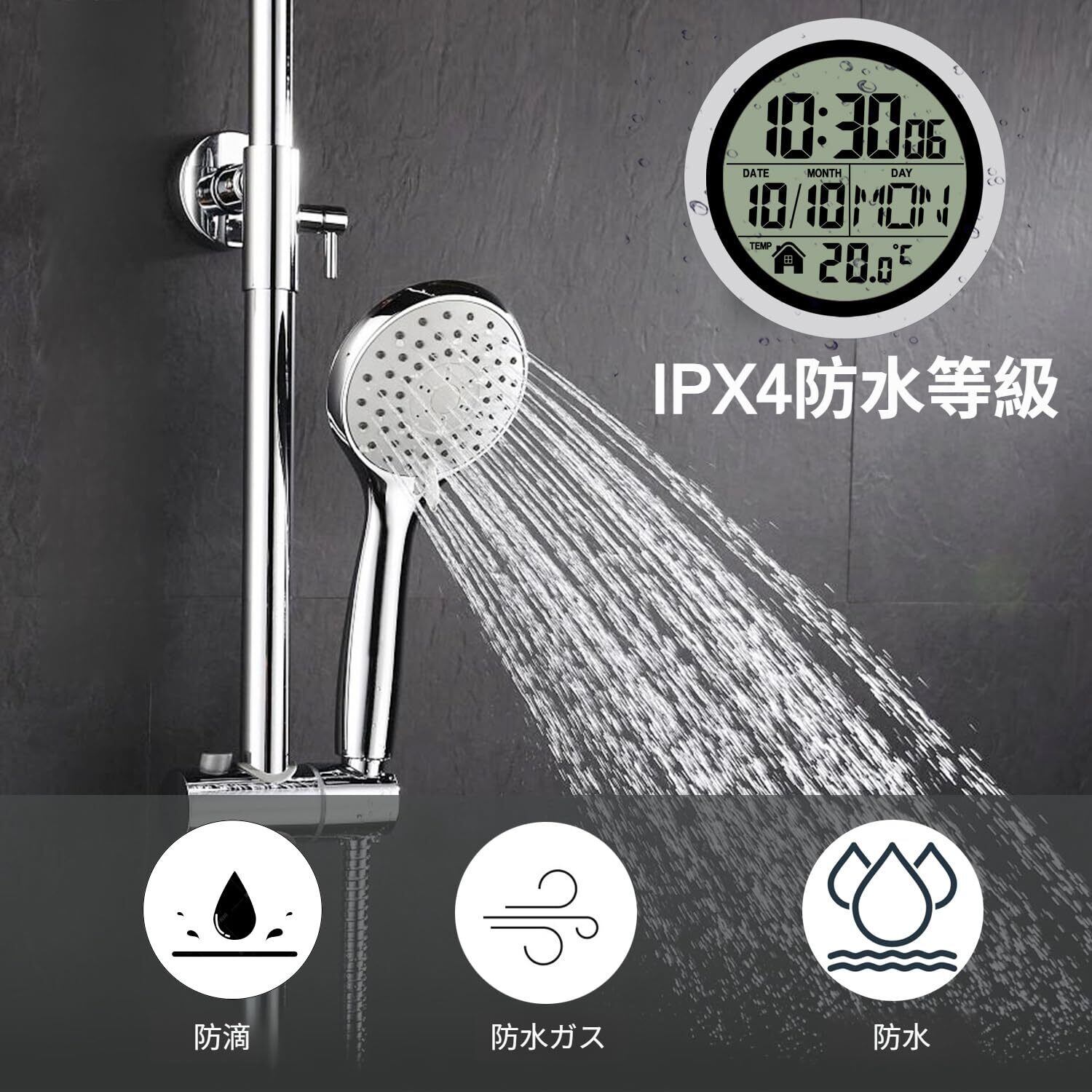 [Maplefea]防水時計 お風呂用 デジタル時計 壁掛け 目覚まし時計 LCDデジタルキッチンクロック 電池式 ホーム天気・湿度・曜日表示 IPX4防水 吸盤/マグネット両用 14.6cm大文字表示 キッチン 中庭 ルーム