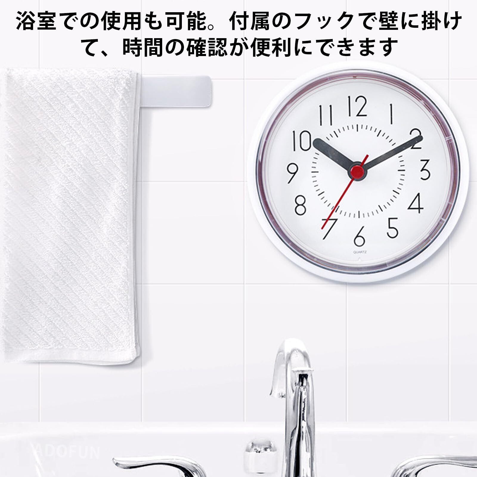 時計 防水 バスルーム時計 掛け時計 ウォールクロック 吸盤付き 静音浴室 台所 お風呂用 家庭用 ルーム インテリア(ホワイト)